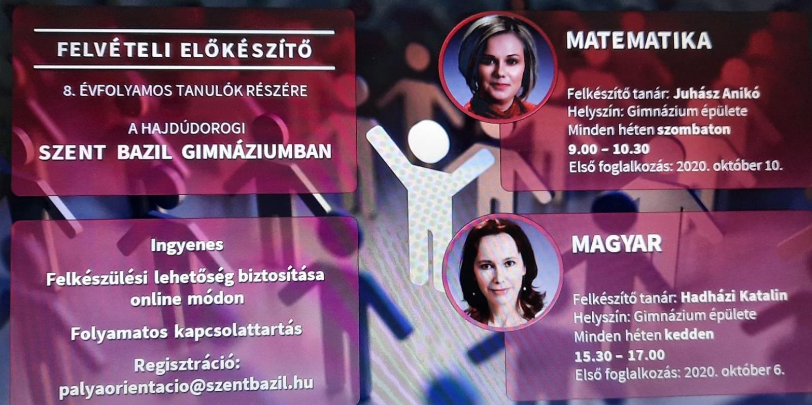 A felkészítőt gimnáziumunk elismert tanárai, Hadházi Katalin és Juhász Anikó tartják. Az előkészítők a gimnázium épületében kerülnek megszervezésre, 90 perces foglalkozások keretében.