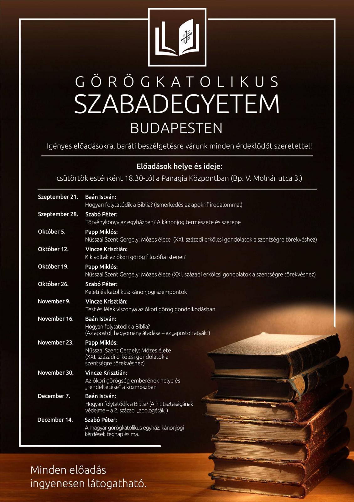 A Görögkatolikus Szabadegyetemi előadássorozat a nyíregyházi Szent Atanáz Görögkatolikus Hittudományi Főiskola szervezésében valósul meg.