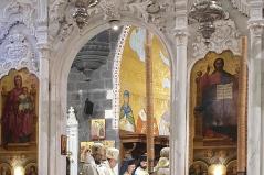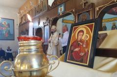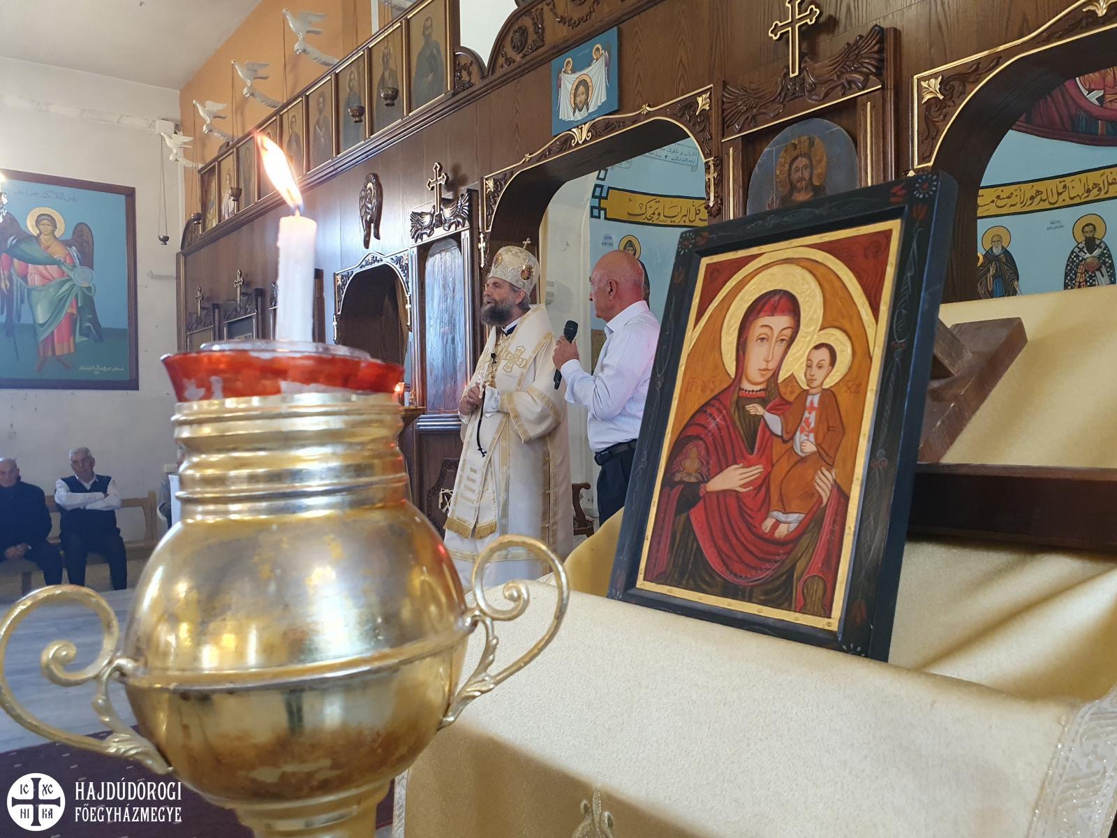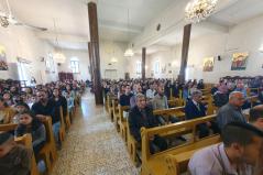 A főpásztor találkozott a parókussal és családjával, megnézték a templomot, mely szintén magán viseli a barbár pusztítás nyomát. Dzsihadista szokás szerint a keresztény képeket és ikonokat kivágták, szétzúzták, elégették. Az ikonosztáz négy képe hiányzik, jelenleg festőt keresnek, aki megfestené az ikonokat.