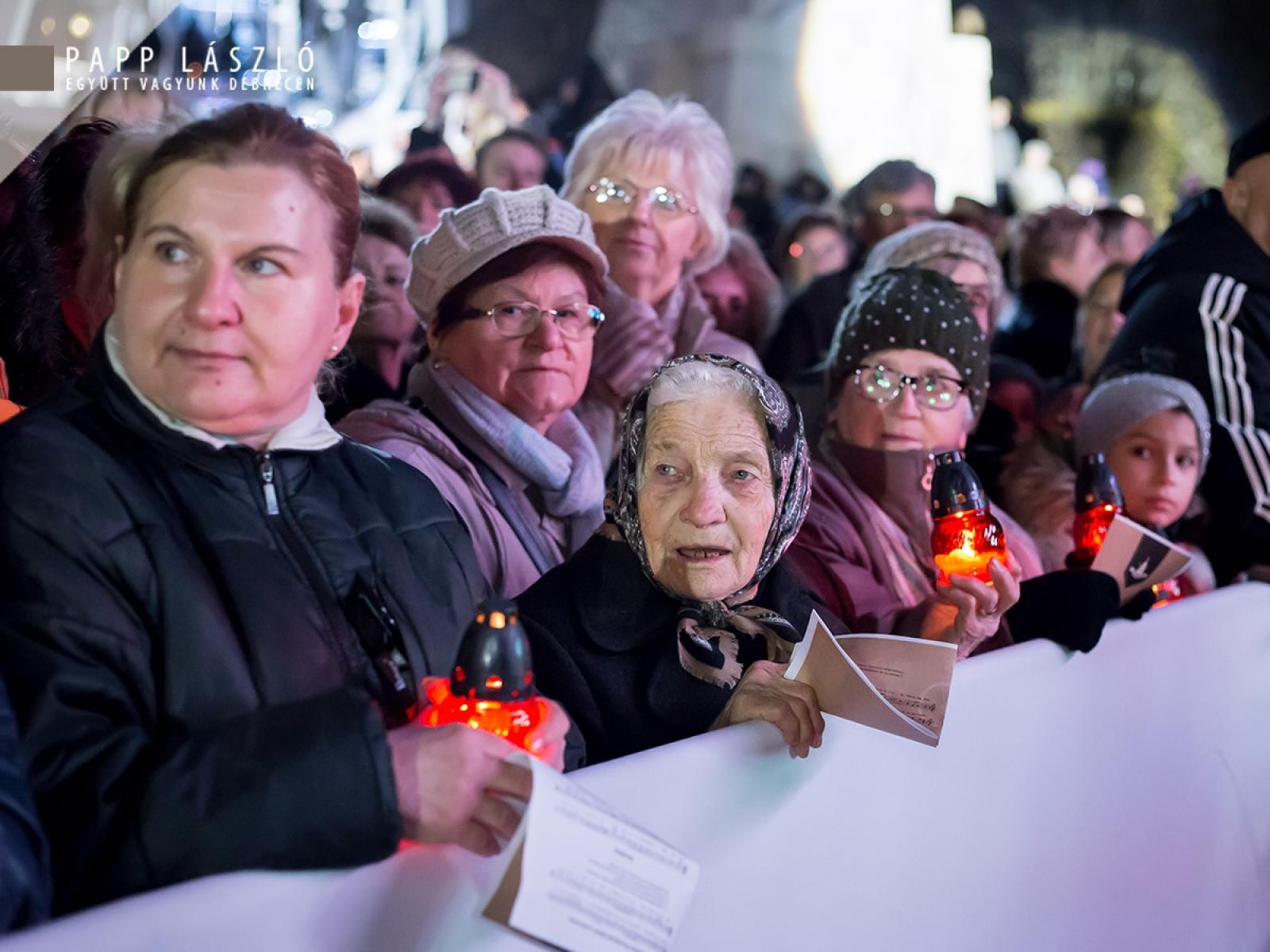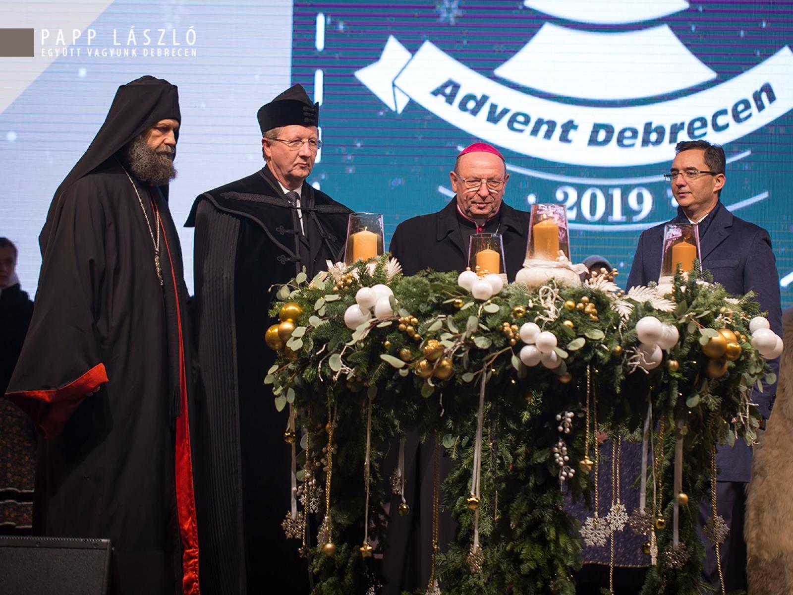 Hercz Nelli, a Debreceni Népi Együttes tagja hozta el a fényt a Kossuth térre, a Nagytemplom előtt több százak vágya teljesült, amikor az adventi koszorún fellobbant az első gyertya lángja vasárnap. Az adventi fényt többen kísérték útján az egyházi felekezetek képviselőivel a Kossuth térig a Régi Városházától indulva – így őrizték együtt a tüzet. A háromkirályok, gólyalábasok vezették az ünnepélyes menetet, őket követte többek között a Debreceni Egyetem Hortobágy Néptáncegyüttese, valamint további fellépők és közreműködők.
