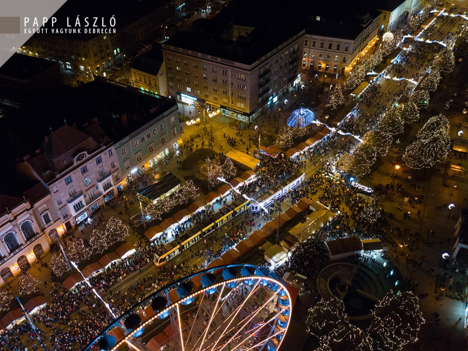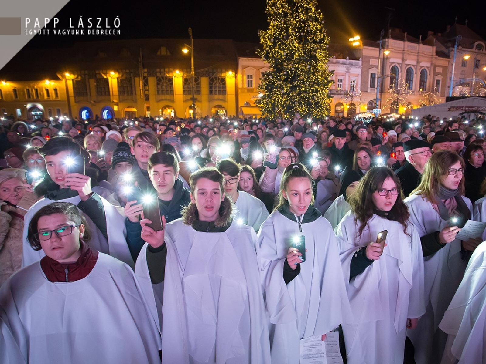 Papp László polgármester is megosztotta a jelenlévőkkel ünnepi gondolatait: „A modern kori karácsony gyönyörű, és egyben elképesztő látványosságban nyilvánul meg. Nem egyszer láthatjuk, hogy a karácsony világi jelképei, már talán semmilyen kapcsolatban nem állnak a keresztény tanításokkal: a hittel, Jézus születésével – ha le akarom egyszerűsíteni – akkor pusztán egy nagy bevétellel kecsegtető ünnep, amelyhez meg kell teremteni a fogyasztásra, a költekezésre ösztönző látványvilágot. Ha magunkba nézünk, akkor pontosan tudjuk, mi sem tudunk ellenállni a mai, karácsonyhoz kötődő szokásoknak. Amelyeknek természetesen nagyon fontos része, hogy örömet szerezzünk mindazoknak, akik fontosak számukra, de ez a látványvilág – amelyről beszéltem – a karácsonynak a külsőleg érzékelhető, látható oldala. Ha ez a látható karácsonyi világ – amely körülvesz bennünket – tiszteletben tartja: a tradíciókat, a vallási szokásokat – tiszteli, sőt kiemeli a karácsony keresztény lényegét. Debrecenben, az ünnepre történő felkészülés összeforrt az egyházakkal, a karácsony egyházi, vallási tanításaival, ez pedig segíteni tudja azt a törekvést, hogy minél több emberhez eljusson a karácsony csodálatos üzenete: Jézus születésének öröme.” – hangsúlyozta beszédében.