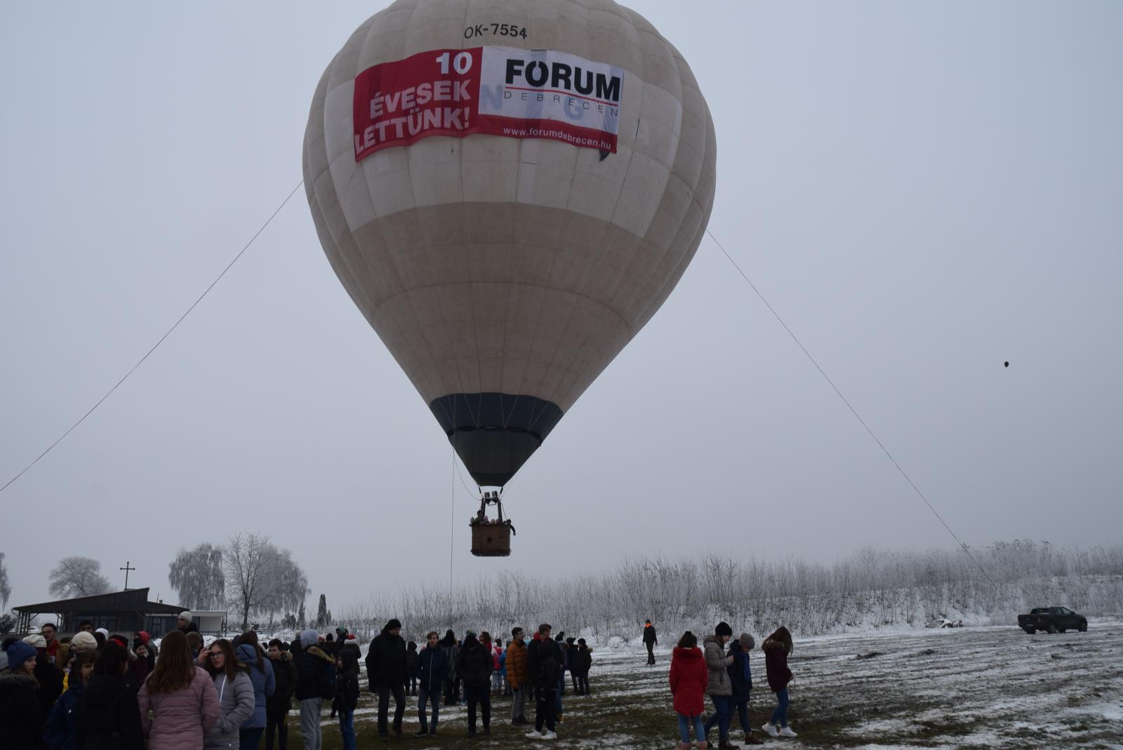 A nap délelőttje nagyon izgalmasan folytatódott a gyermekek, de még a felnőttek számára is. Mire vége lett a liturgiának, már messziről lehetett látni a régi sportpályán emelkedő hatalmas hőlégballont. Ha nem is a Mikulás, de az ajándék mindenképpen hőlégballonnal érkezett a nyíracsádi diákokhoz, hisz a hatalmas gömb látványa, és persze a felemelkedés élménye volt maga az ajándék, aminek nemcsak a gyerekek örültek, de ámulatba ejtette a felnőtteket és a környéken lakókat is. A régi sportpályára a délelőtt folyamán sorra érkeztek a tanulók, és persze a kíváncsiskodók is.