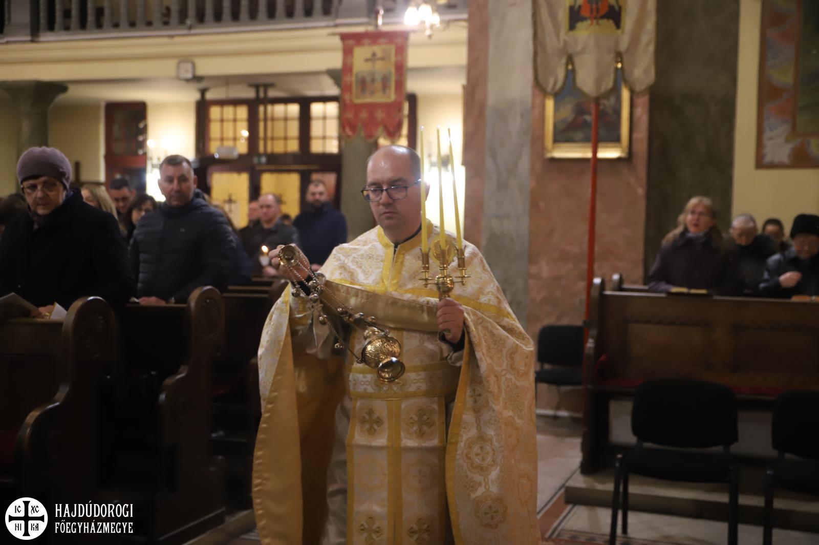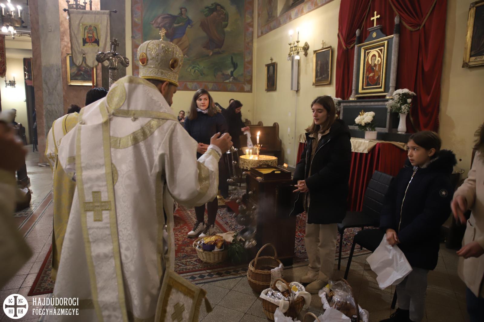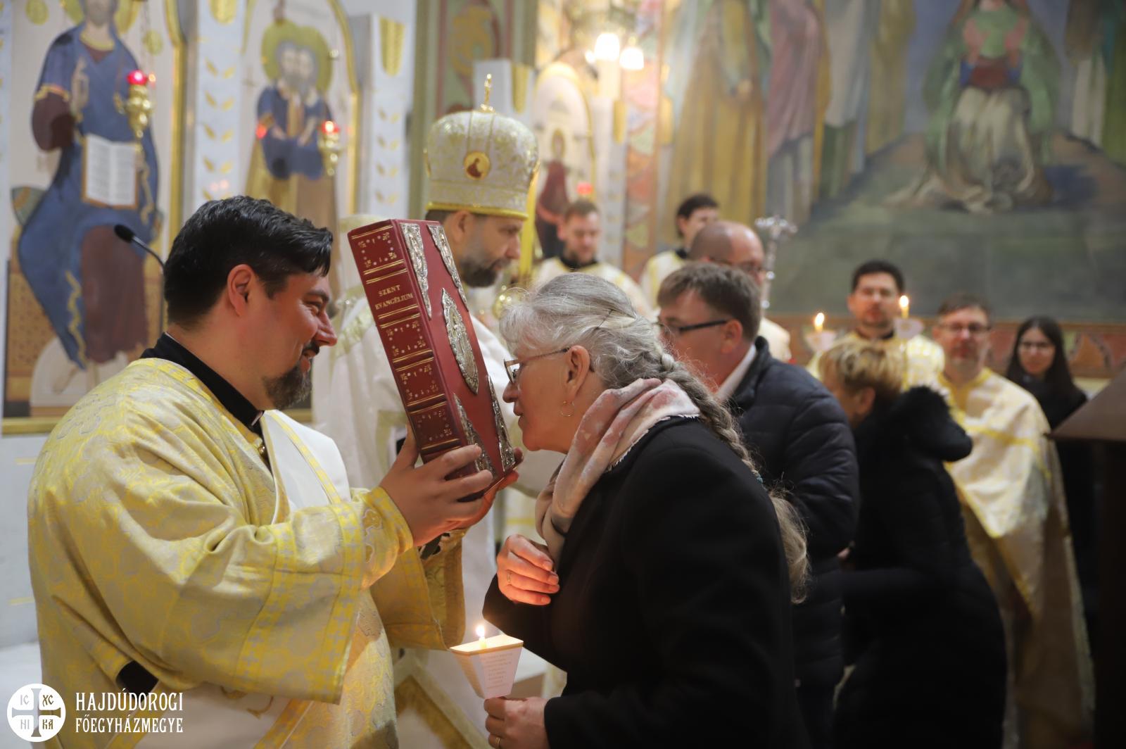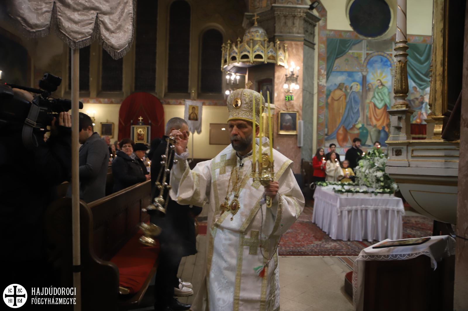 Így rendezte az Isten a megváltásunkat, így rendezte mindjárt az ember sorsát, amikor megállapította, hogy nem jó az embernek egyedül lenni. Segítő társat alkotott neki, és közösen családot alkottak, közösségben él az ember. Közösségben tud ünnepelni, imádkozni, mindnyájan megtapasztalhattuk azt, hogy nagyon szép az imádság, egészen mély tud lenni, amikor egyedül imádkozik az ember. De amikor ezekre a közös szertartásokra összejövünk, szinte önkéntelenül is magával ragadja az ember lelkét a közös imádság, amely nemcsak itt a debreceni görögkatolikus templom néhány száz görögkatolikusaira vonatkozik és nem is csak a magyarországi görögkatolikusokra, és nem is csak az imádkozó földi emberekre, hanem a szentekre, az angyalokra.