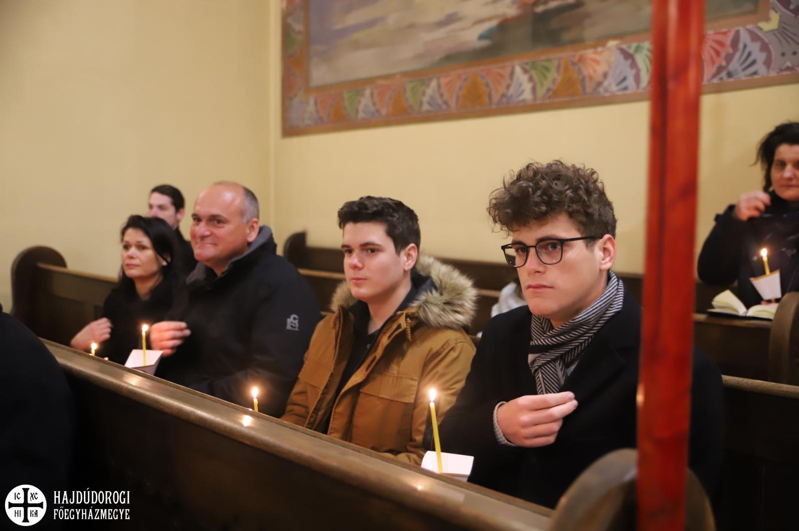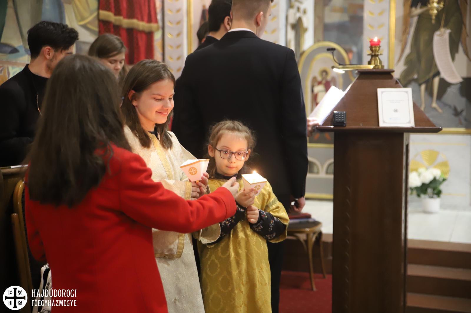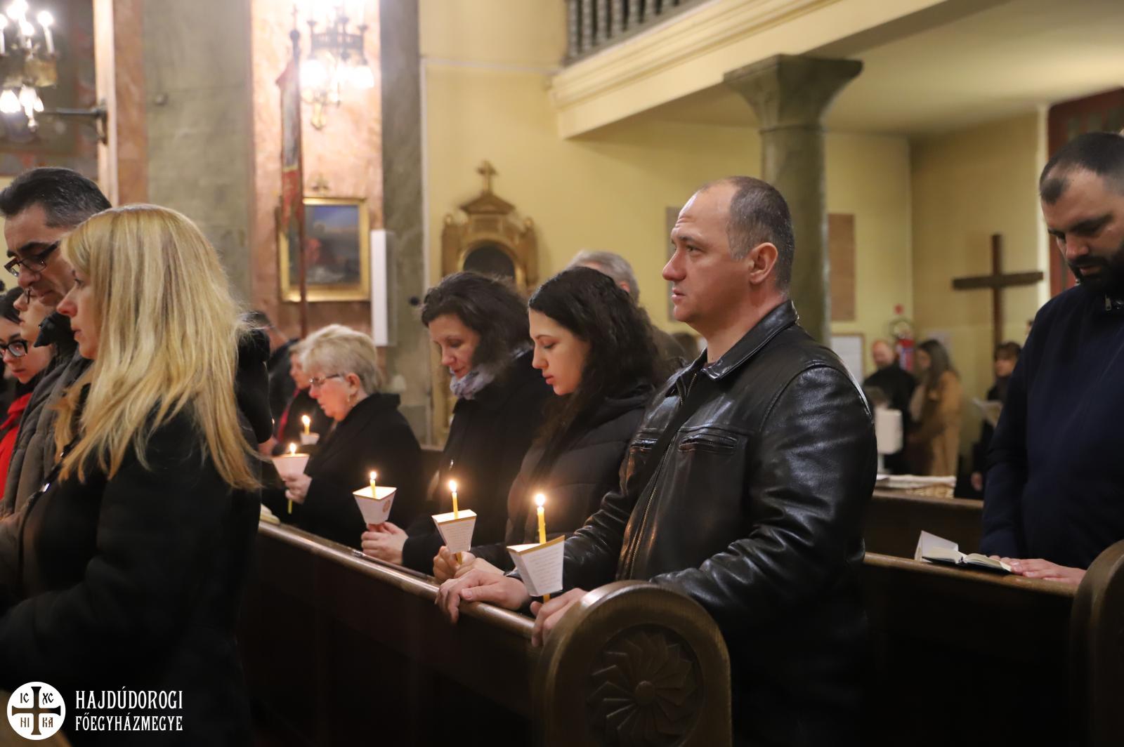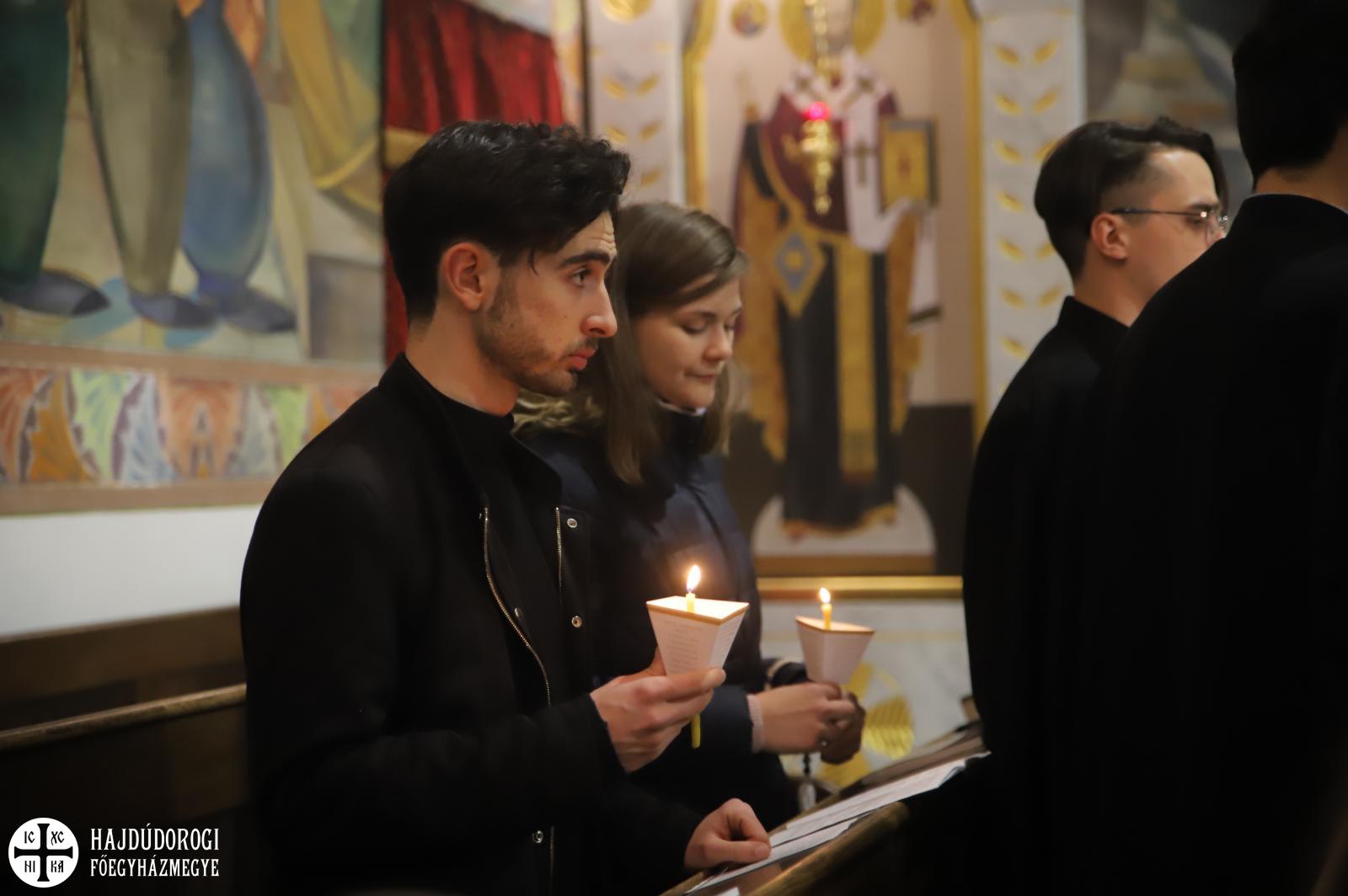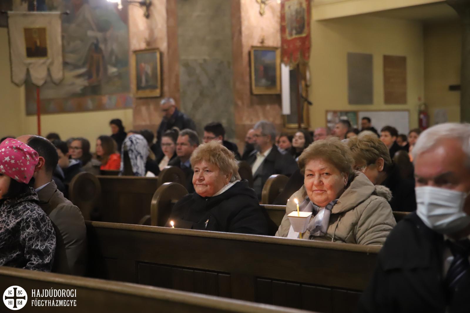 Így rendezte az Isten a megváltásunkat, így rendezte mindjárt az ember sorsát, amikor megállapította, hogy nem jó az embernek egyedül lenni. Segítő társat alkotott neki, és közösen családot alkottak, közösségben él az ember. Közösségben tud ünnepelni, imádkozni, mindnyájan megtapasztalhattuk azt, hogy nagyon szép az imádság, egészen mély tud lenni, amikor egyedül imádkozik az ember. De amikor ezekre a közös szertartásokra összejövünk, szinte önkéntelenül is magával ragadja az ember lelkét a közös imádság, amely nemcsak itt a debreceni görögkatolikus templom néhány száz görögkatolikusaira vonatkozik és nem is csak a magyarországi görögkatolikusokra, és nem is csak az imádkozó földi emberekre, hanem a szentekre, az angyalokra.
