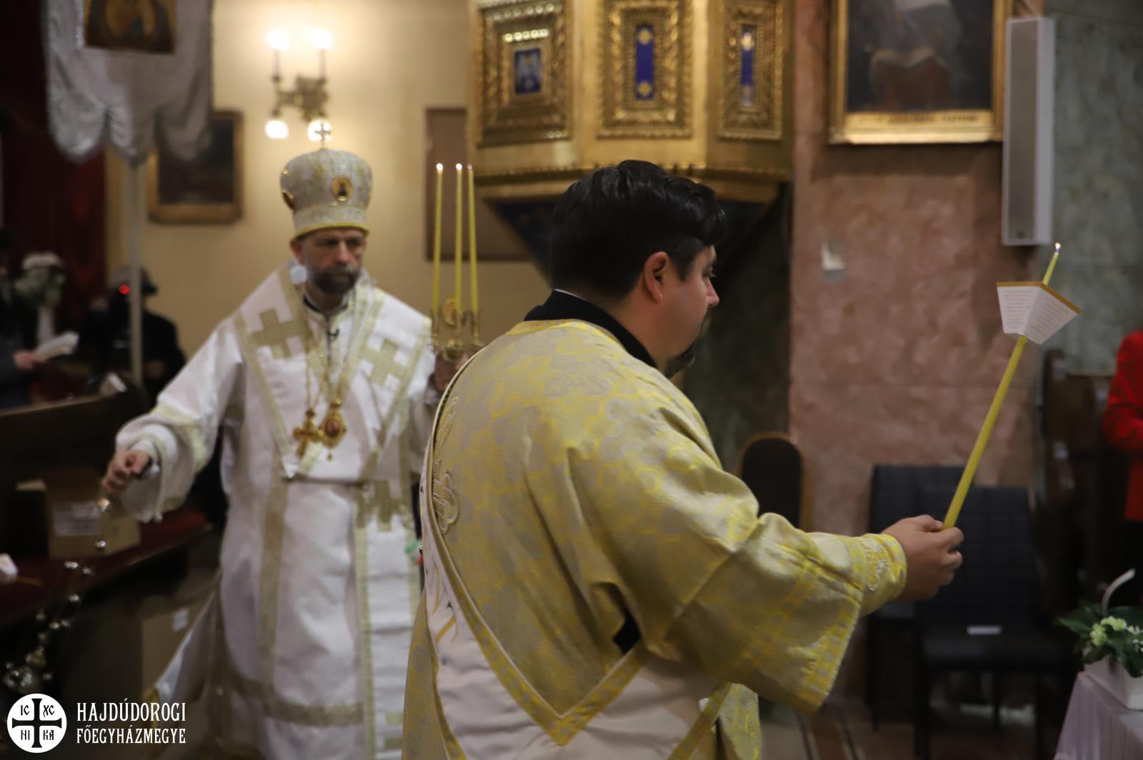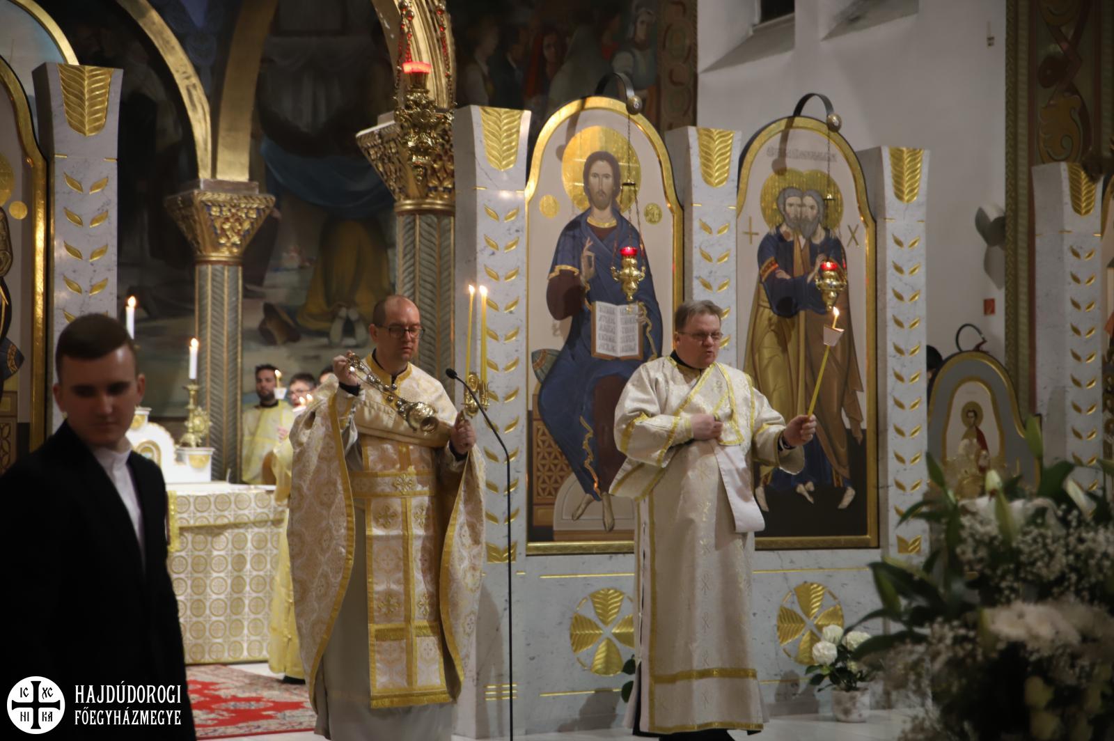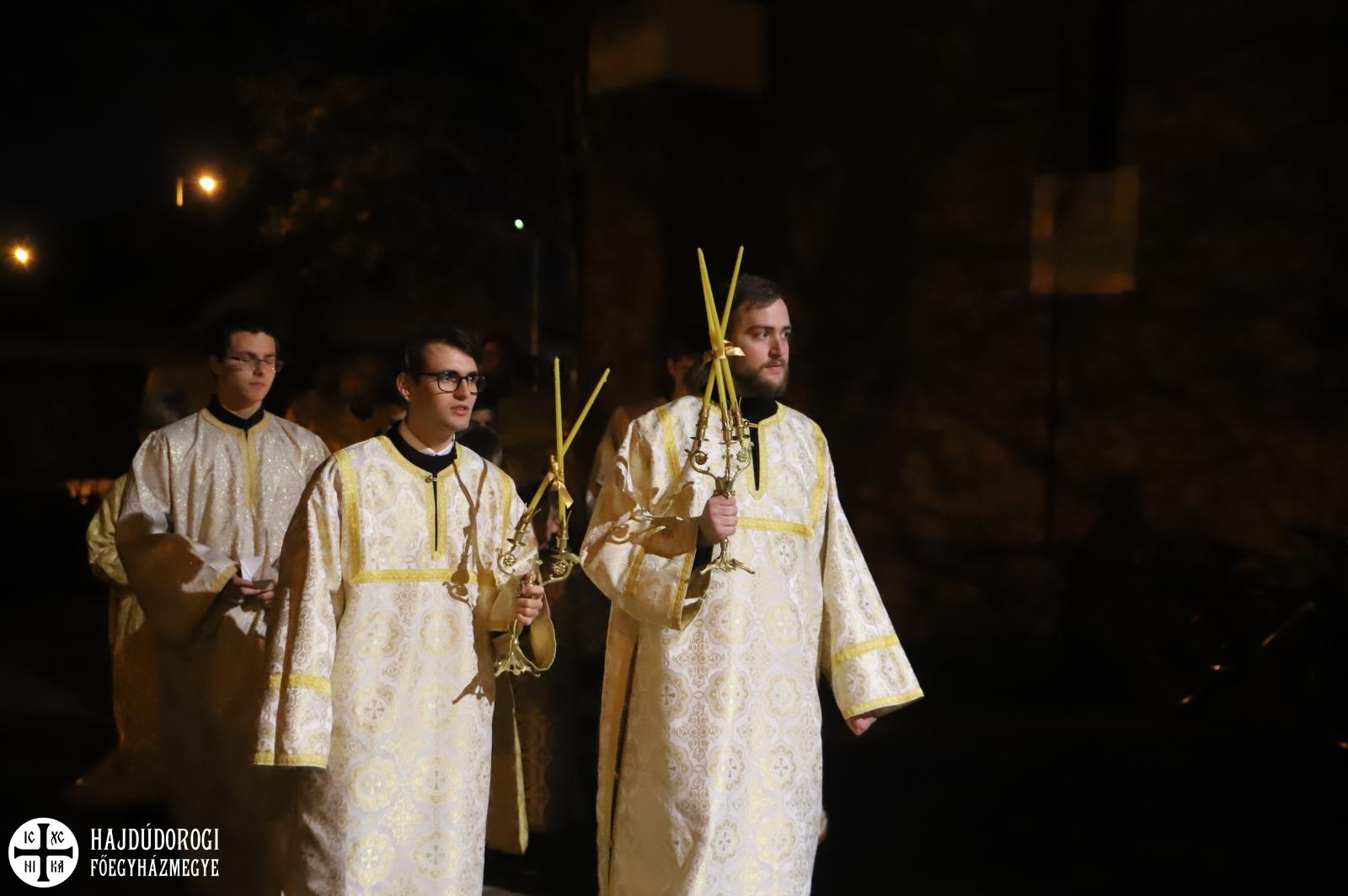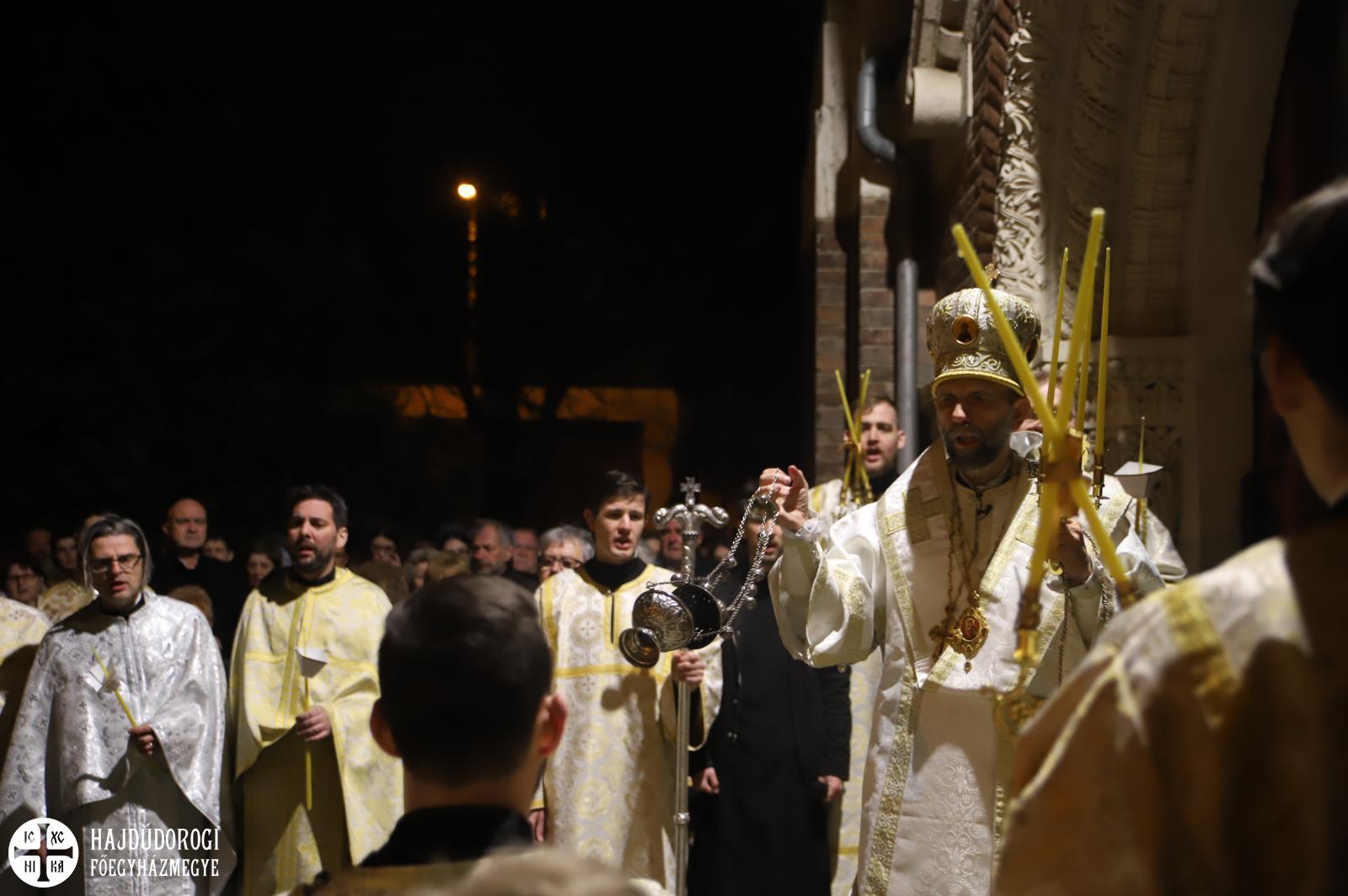 Többször is elhangzott a készületben, hogy ennek a Húsvétnak másnak kell lenni, mint az eddigieknek, ennek a húsvétnak át kell változtatni az életünket, át kell formálnia, nemcsak a mienket, hanem rajtunk keresztül a családunkét, a társadalomét, egész magyar nemzetét, de nem túlzás azt is mondani, hogy az egész világét, hiszen a világ részesei vagyunk mi is. Ha a mi életünk megváltozik, megváltozik tőle a világ is. Idehívott, hogy részesítsen bennünket a föltámadás örömében, idehívott, hogy aztán, amikor útra bocsát bennünket, akkor hirdessük: Föltámadt Krisztus! Így köszöntjük egymást: Föltámadt Krisztus! – ennél nagyobb hír nincsen, ennél többet nem mondhatunk. Mi görögkatolikosok jól tudjuk rá a választ: valóban föltámadt! Az Isten ezzel az örömmel, ünnepléssel mintegy kinyilatkoztatja az ő erejét és hatalmát. Föltámadt Krisztus, valóban föltámadt! Itt van velünk, átalakítja az életünket.
