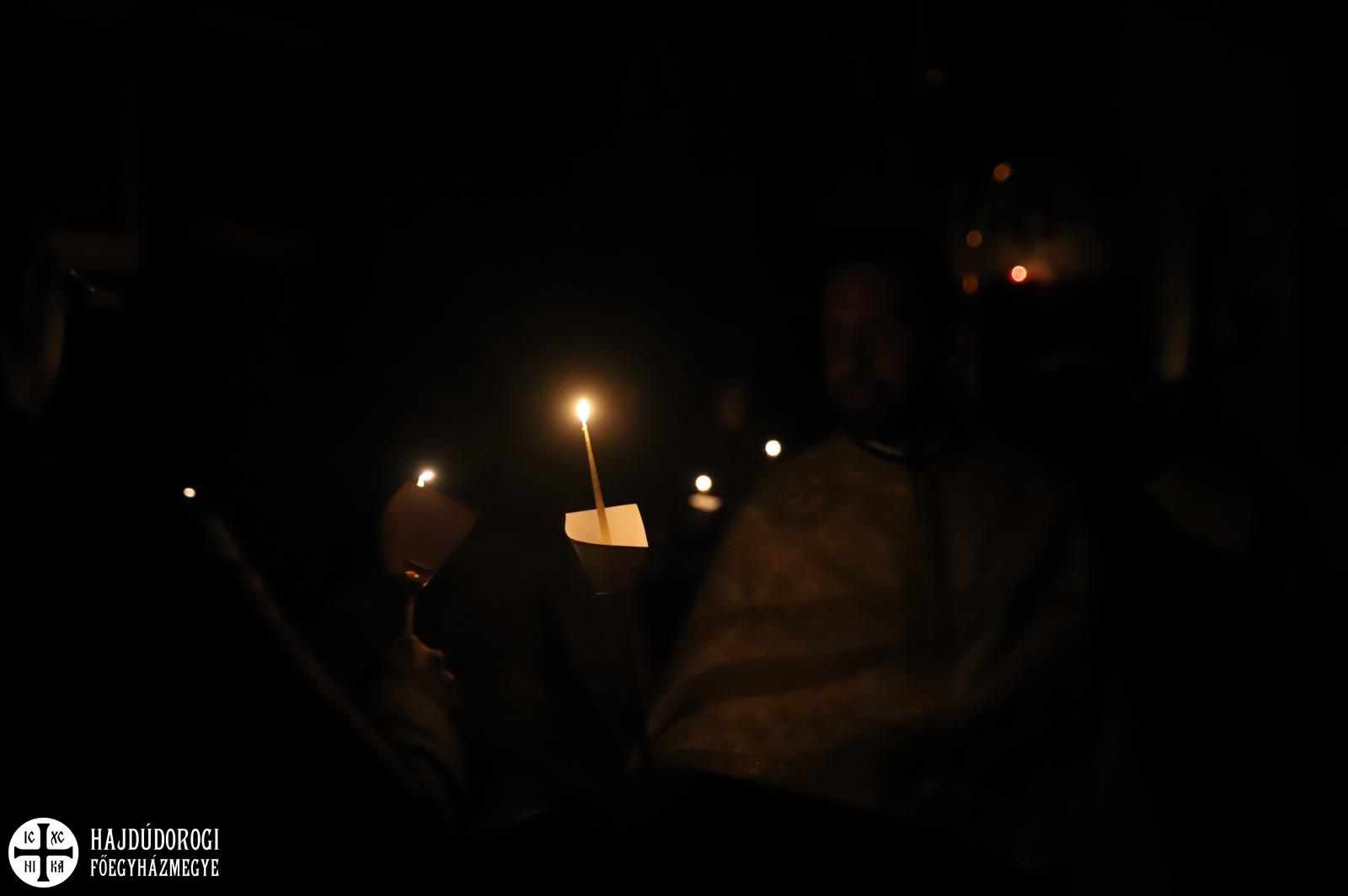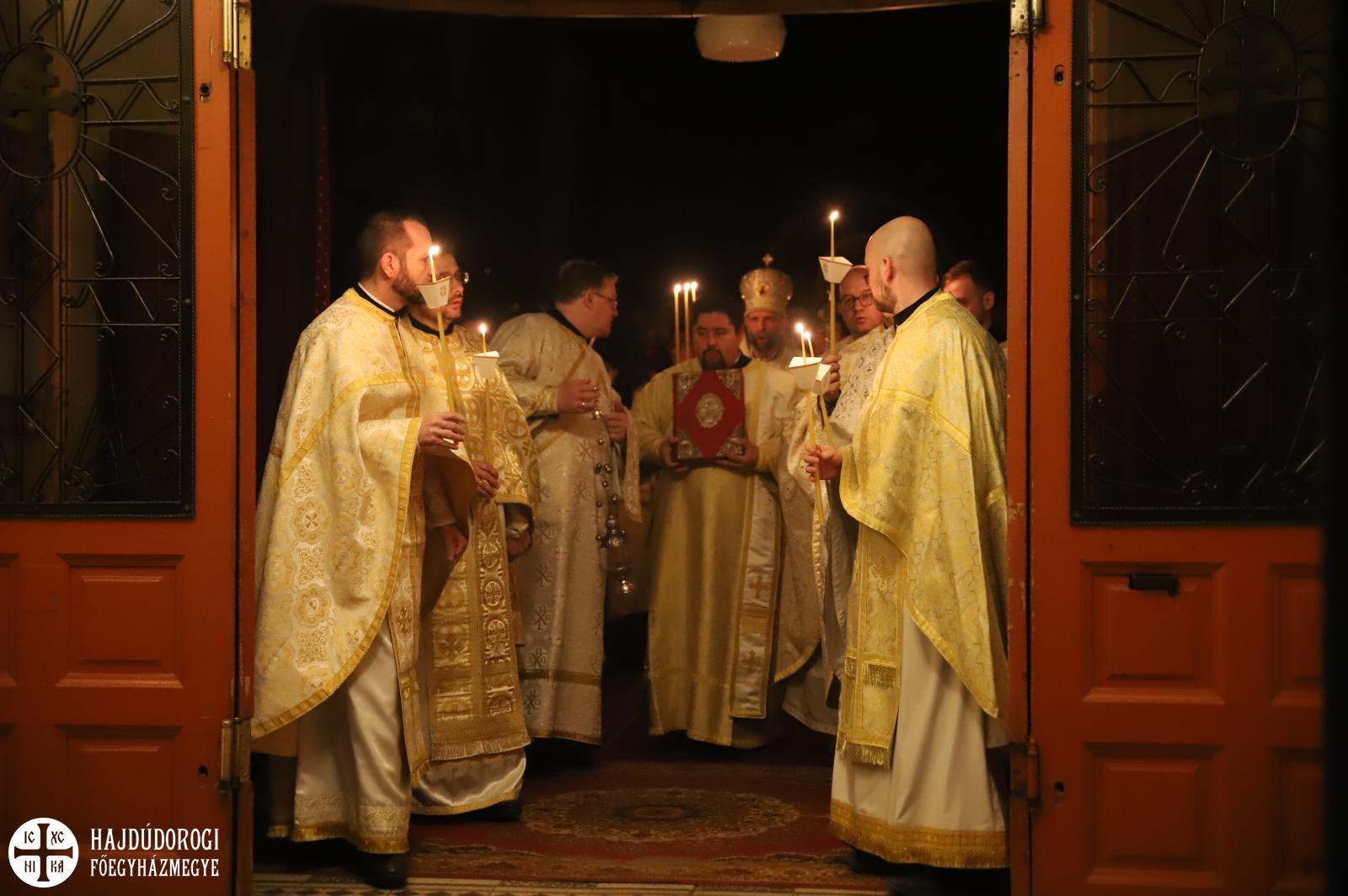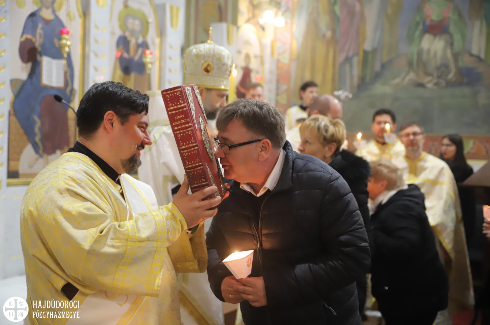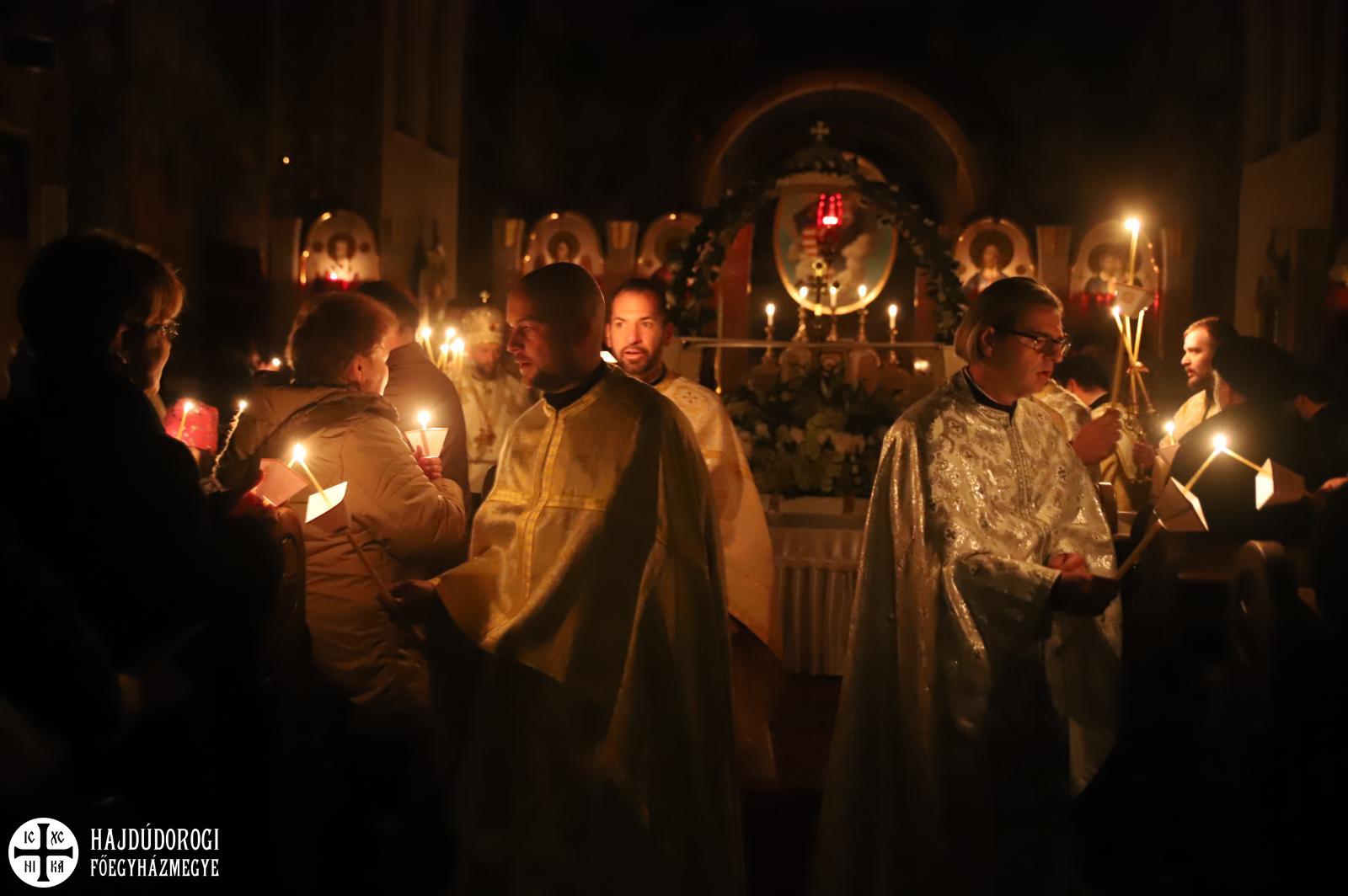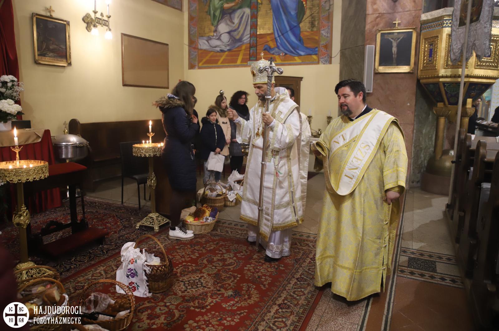 Többször is elhangzott a készületben, hogy ennek a Húsvétnak másnak kell lenni, mint az eddigieknek, ennek a húsvétnak át kell változtatni az életünket, át kell formálnia, nemcsak a mienket, hanem rajtunk keresztül a családunkét, a társadalomét, egész magyar nemzetét, de nem túlzás azt is mondani, hogy az egész világét, hiszen a világ részesei vagyunk mi is. Ha a mi életünk megváltozik, megváltozik tőle a világ is. Idehívott, hogy részesítsen bennünket a föltámadás örömében, idehívott, hogy aztán, amikor útra bocsát bennünket, akkor hirdessük: Föltámadt Krisztus! Így köszöntjük egymást: Föltámadt Krisztus! – ennél nagyobb hír nincsen, ennél többet nem mondhatunk. Mi görögkatolikosok jól tudjuk rá a választ: valóban föltámadt! Az Isten ezzel az örömmel, ünnepléssel mintegy kinyilatkoztatja az ő erejét és hatalmát. Föltámadt Krisztus, valóban föltámadt! Itt van velünk, átalakítja az életünket.