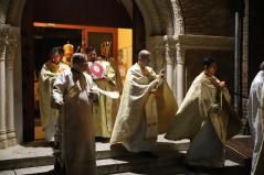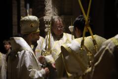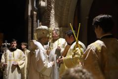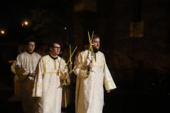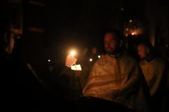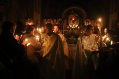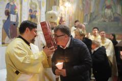 Azért is oly emelkedett ez a szertartás, mert ilyenkor bekapcsolódunk a mennyei liturgiába, s együtt énekelnek velünk a szentek és az angyalok. Ehhöz el kell jönni ide, a templomba, ehhöz együtt kell imádkozni az Egyházzal. S oly szépek voltak ezek a szertartások, az Előszenteltek Liturgiájától kezdve Nagycsütörtöki szertatáson át, a Nagypénteki sírbatételig, a Nagyszombati jeruzsálemi utrenyén keresztül egészen a feltámadási szertartásig.