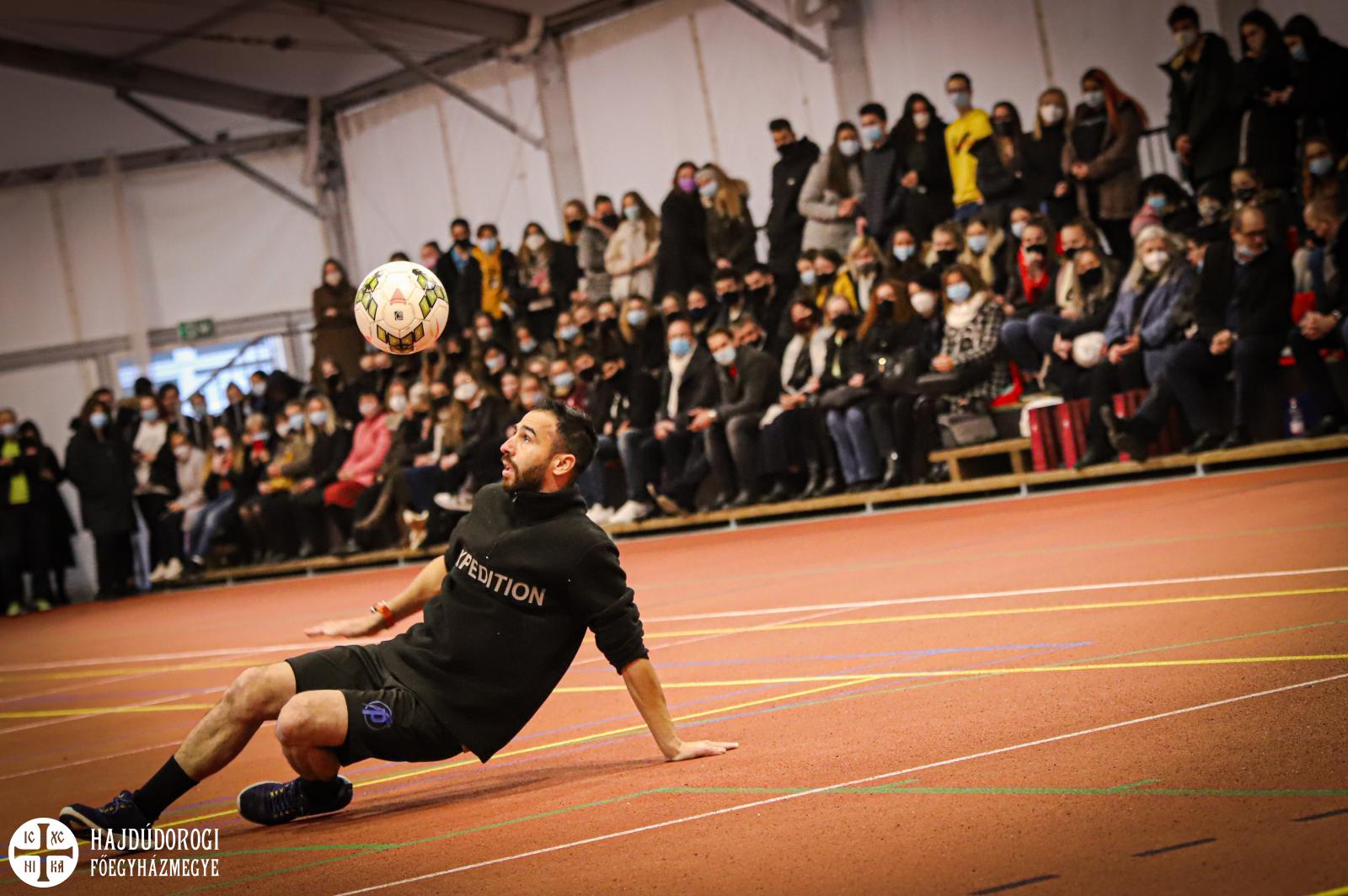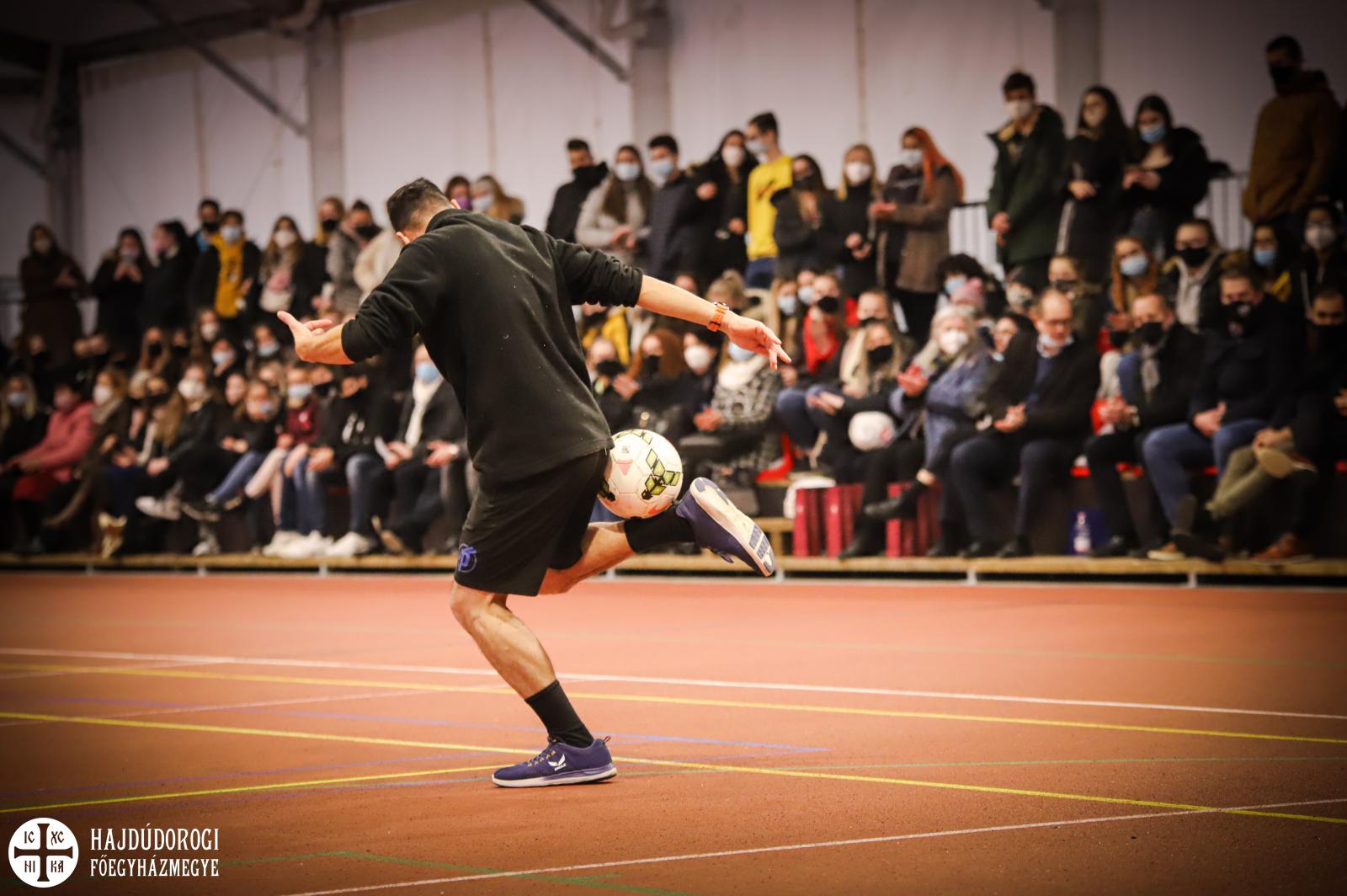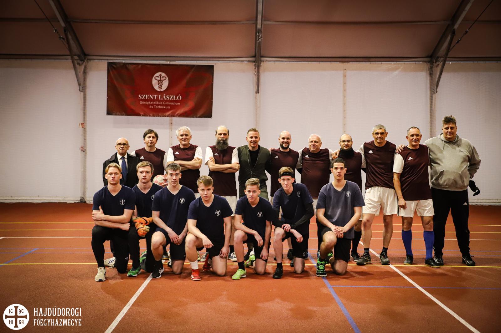 A tanár-diák mérkőzést megelőzően bemutatót tartott László Gyula Guinness-rekorder labdazsonglőr, aki néhány percben kedvenc trükkjeiből hozott el párat a közönség számára. Ezt követően kezdődhetett az avató mérkőzés, amelynek kezdőrúgását a Loki kiválósága, Dzsudzsák Balázs végzett el. A remek hangulatú tanár-diák meccsbe Fülöp metropolita atya is beszállt, s a tanárok oldalán igyekezett gólokat rúgni.