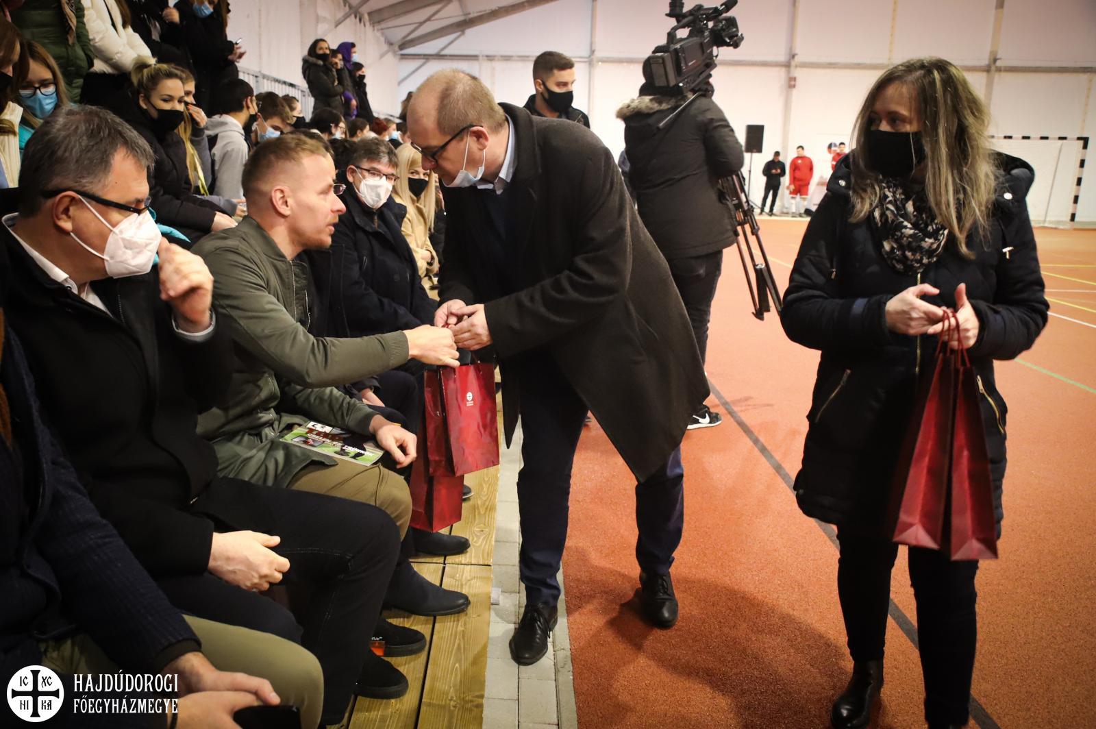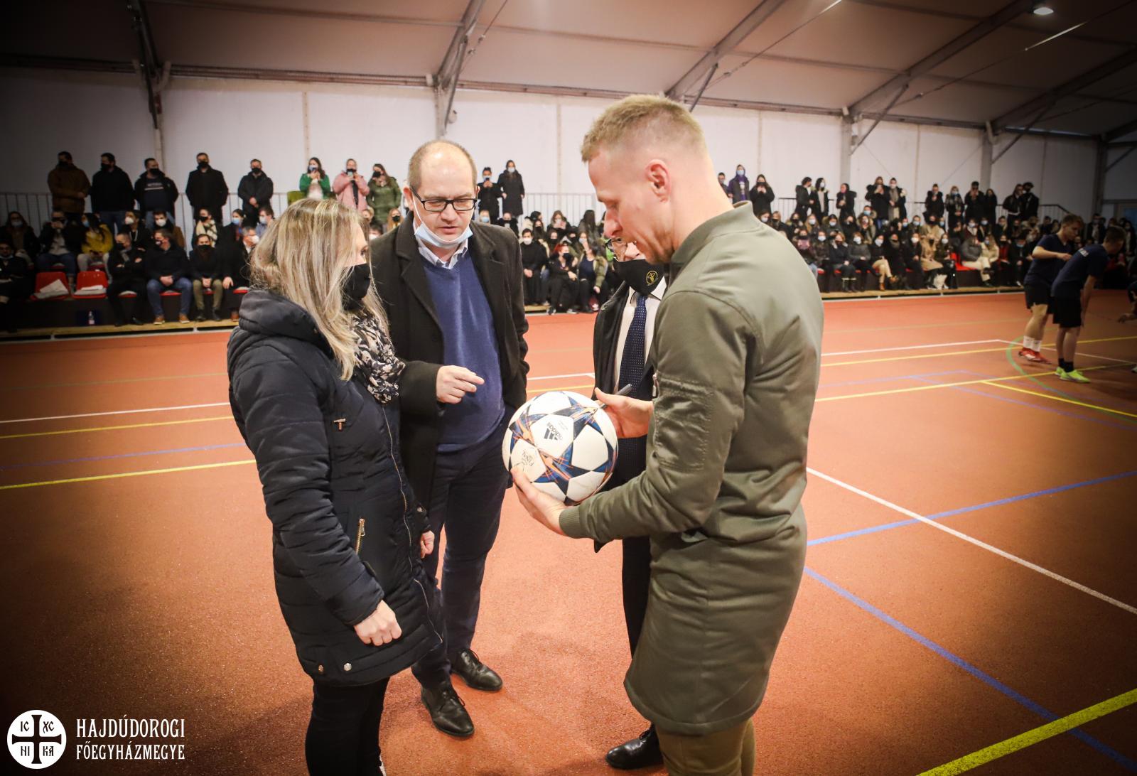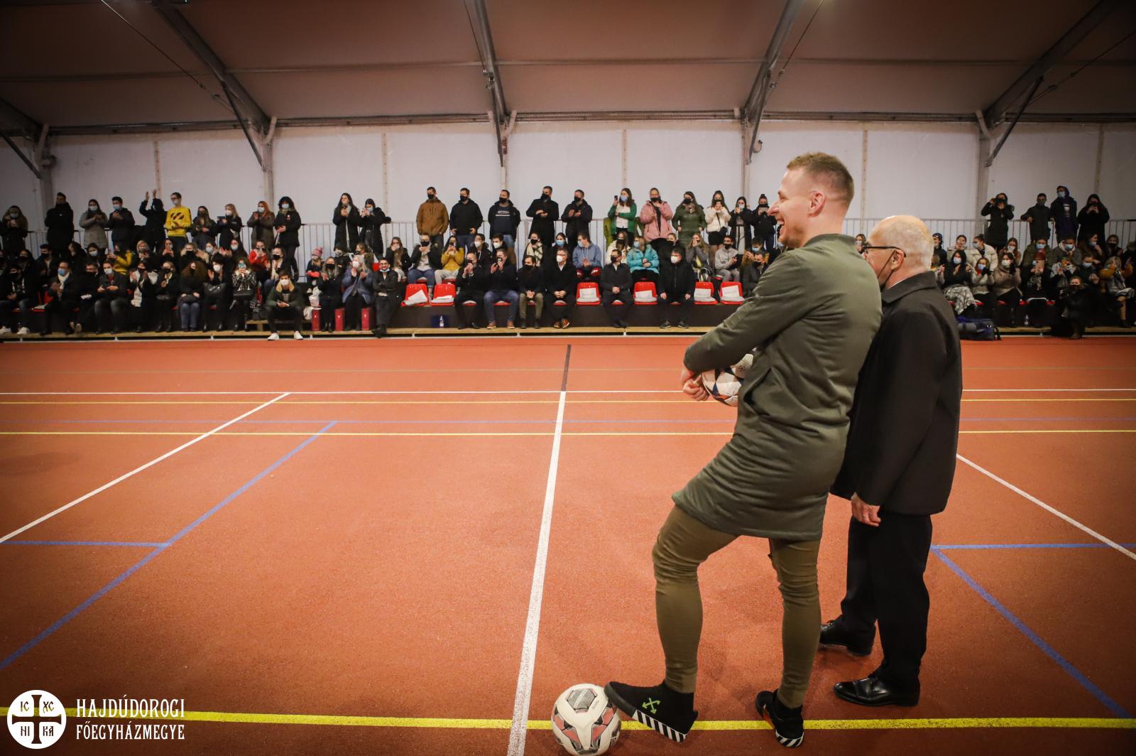 A tanár-diák mérkőzést megelőzően bemutatót tartott László Gyula Guinness-rekorder labdazsonglőr, aki néhány percben kedvenc trükkjeiből hozott el párat a közönség számára. Ezt követően kezdődhetett az avató mérkőzés, amelynek kezdőrúgását a Loki kiválósága, Dzsudzsák Balázs végzett el. A remek hangulatú tanár-diák meccsbe Fülöp metropolita atya is beszállt, s a tanárok oldalán igyekezett gólokat rúgni.