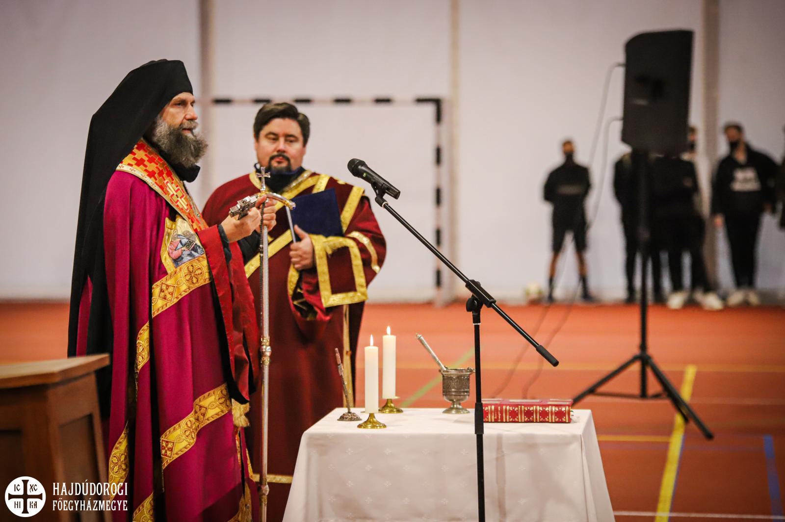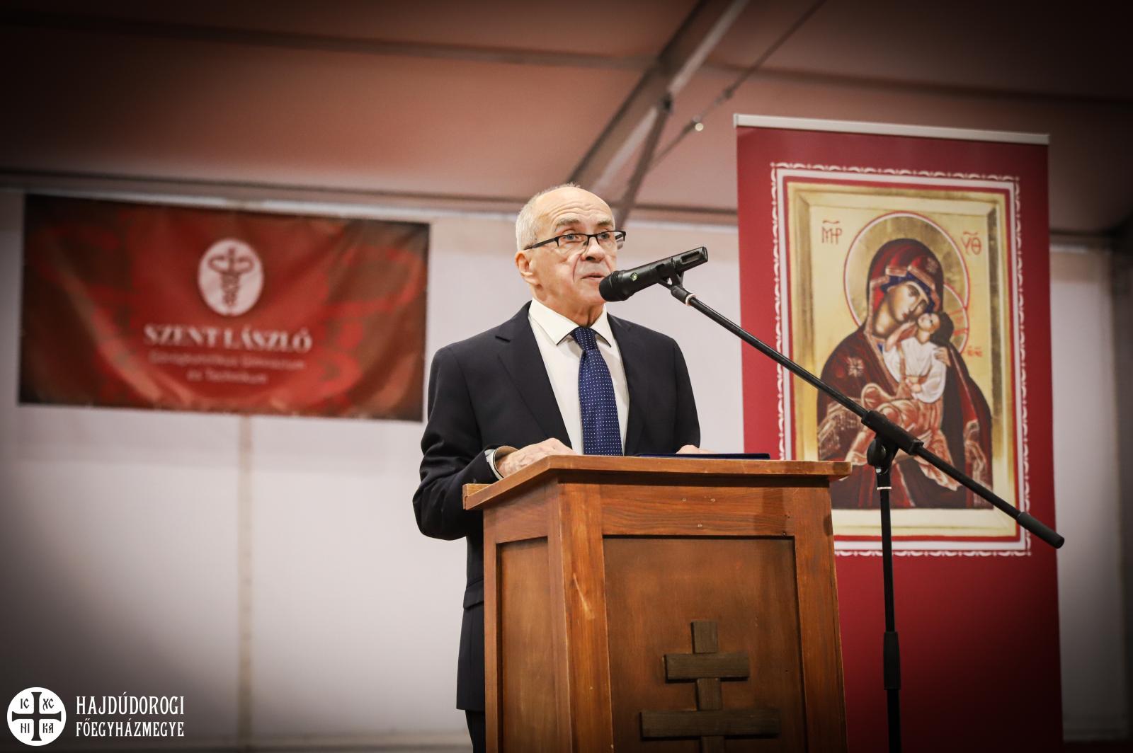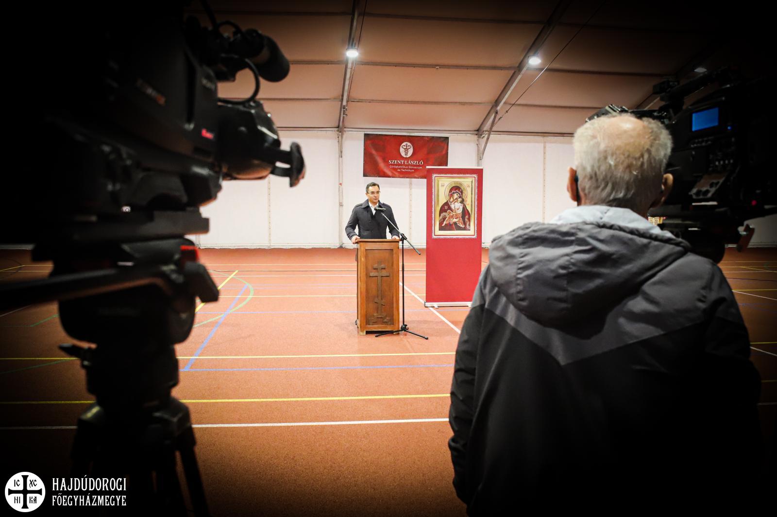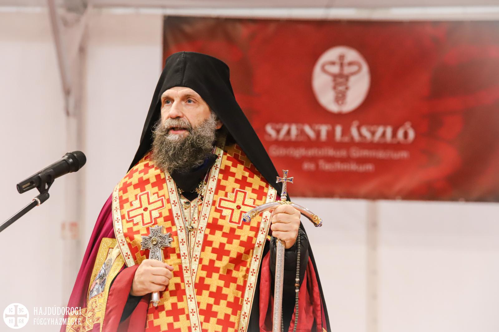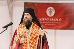 Fülöp metropolita atya felidézte: azért lett néhány éve Szent László az iskola neve, hogy személye igazi példa legyen az itt tanulóknak. Azok a szentek, akik nagyon tudnak szeretni, nem törődve az őket gyűlölőkkel sem. Lovagkirályként úgy állt helyt, hogy végig megmutatkozott szentsége. „Szent László tanít minket szeretni és harcosnak lenni, amely szellemi és fizikai értelemben egyaránt megmutatkozhat. Úgyhogy legyen nagy küzdelmek helyszíne ez a sportcsarnok, ahol nem a másikat akarjuk leküzdeni, hanem magunkat, ami által följebb juthatunk.” – zárta gondolatait a főpásztor.