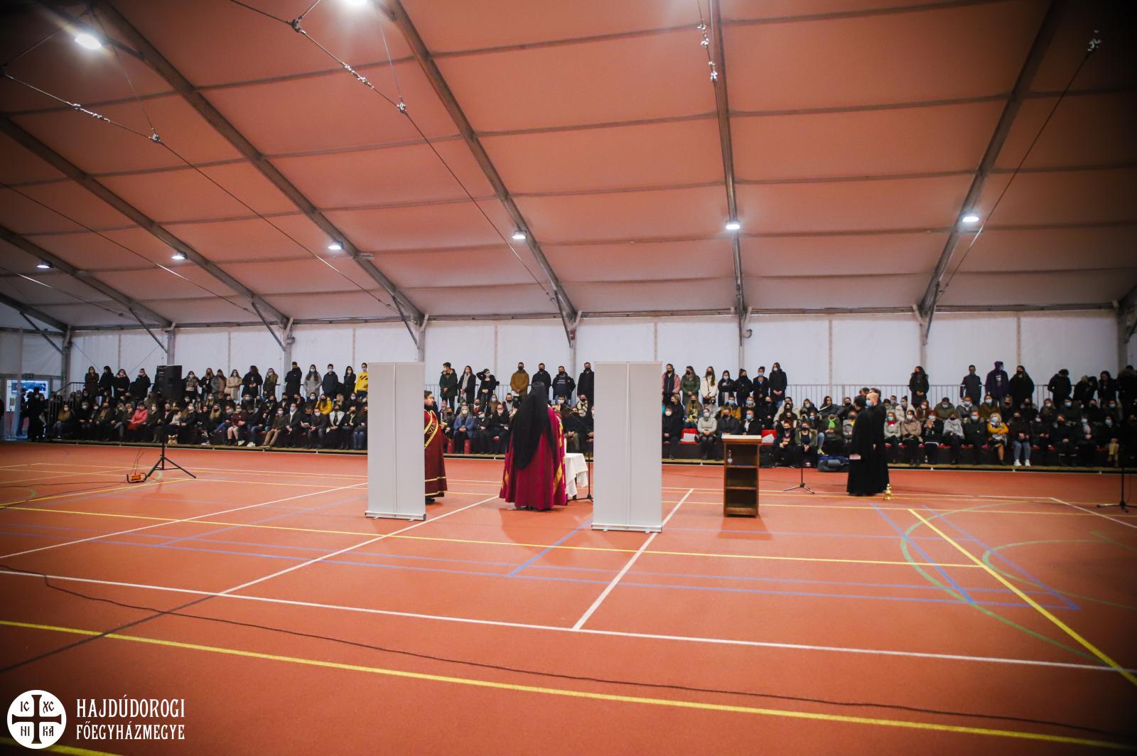 „Sokan szerették volna látni Jézust, ezzel ma sem vagyunk másként, de nekünk ez nem adatik meg. A fáramászás a felfelé törekvés szimbóluma. Jézust látni olyan mélyről fakadó igényünk, minthogy szeretni akarunk és vágyunk arra, hogy minket is szeressen valaki. Az emberségünk jelenik meg ebben a vágyunkban.” – mondta metropolita atya és azzal folytatta, hogy az iskola is fölfelé vezet mindnyájunkat. Görögkatolikus intézményünk megmutathatja azt, hogy a jobbra törekvés mindenre kihat, így nem is volt kérdés, hogy támogatni kell a sportpálya megépítését, amit teljes egészében a fenntartó Hajdúdorogi Főegyházmegye finanszírozott 175 millió Forintból.