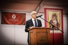 Bánk Tibor igazgató köszöntőjét múltidézéssel kezdte, hiszen öt éve már annak, hogy a görögkatolikusok lettek az egykori Dienes László Gimnázium fenntartói.