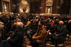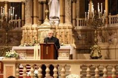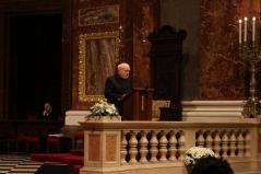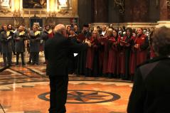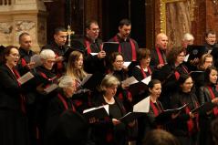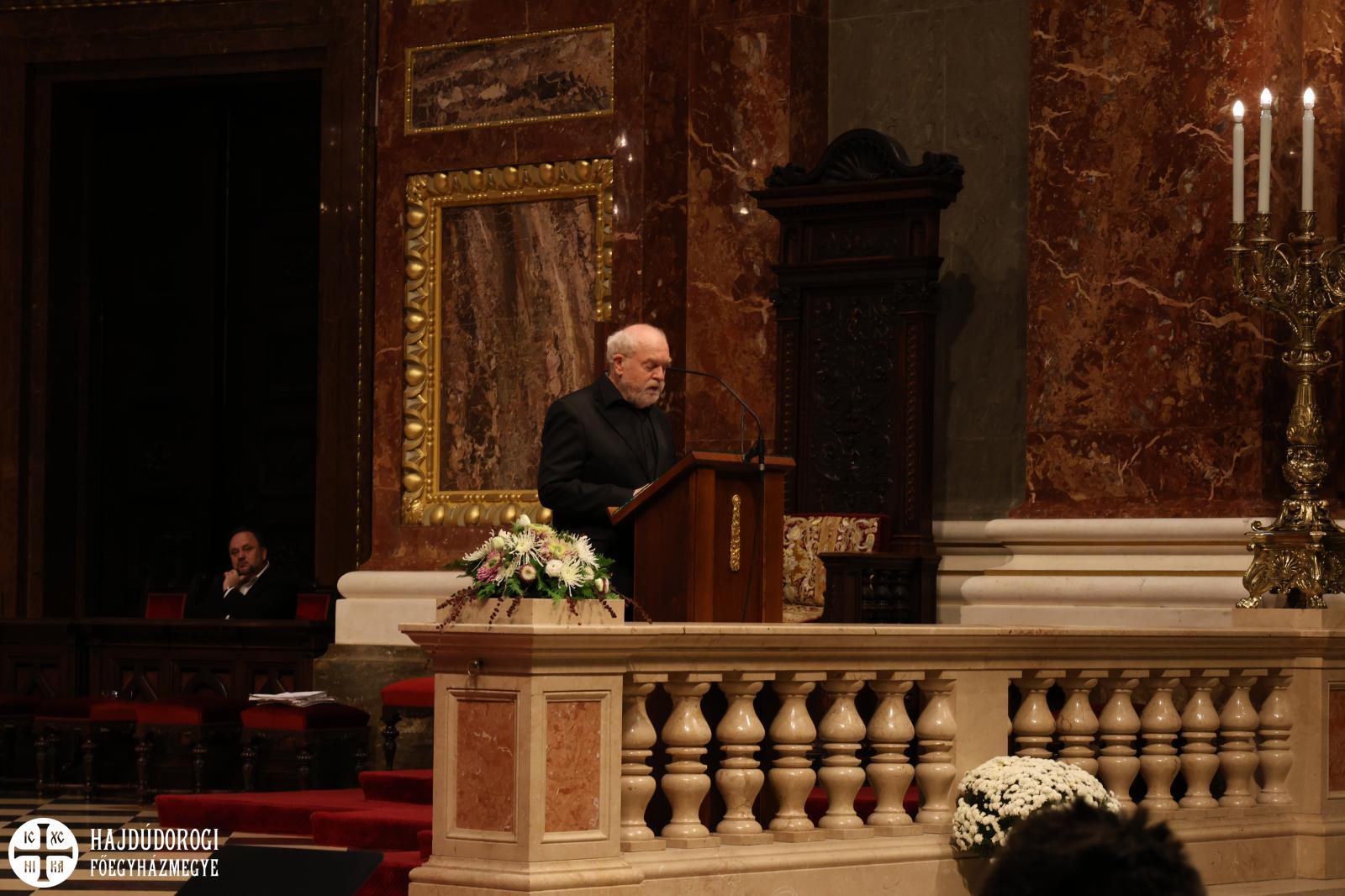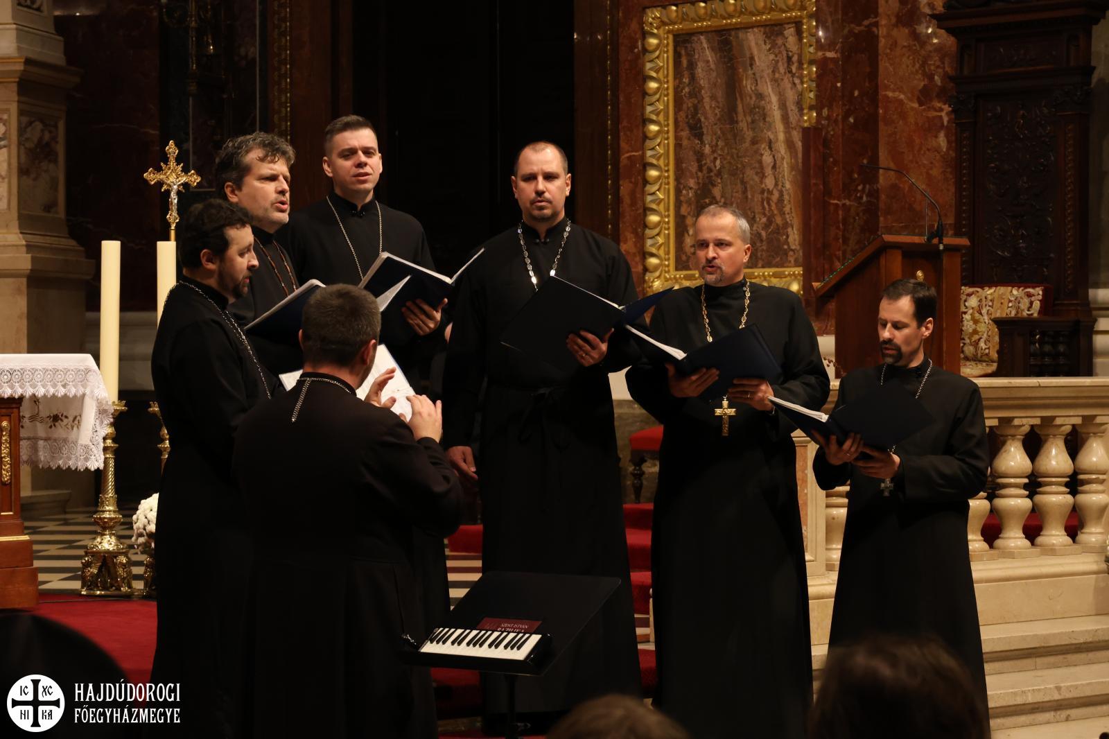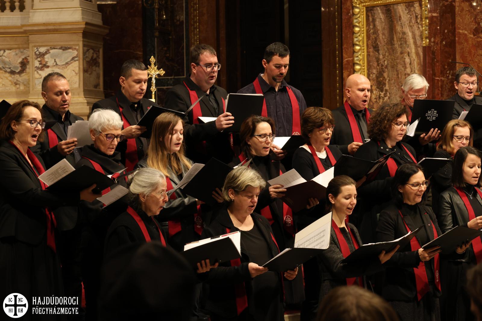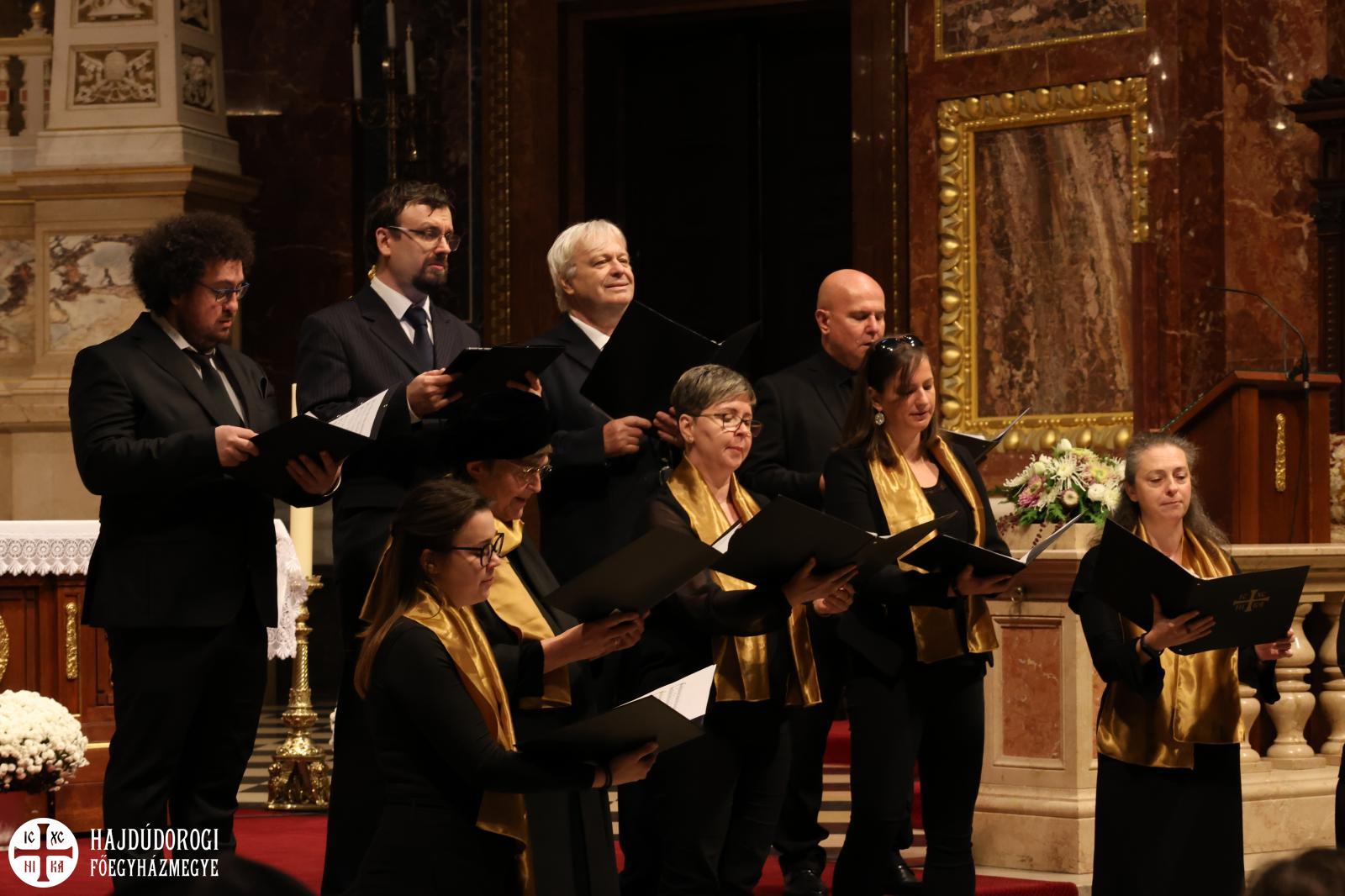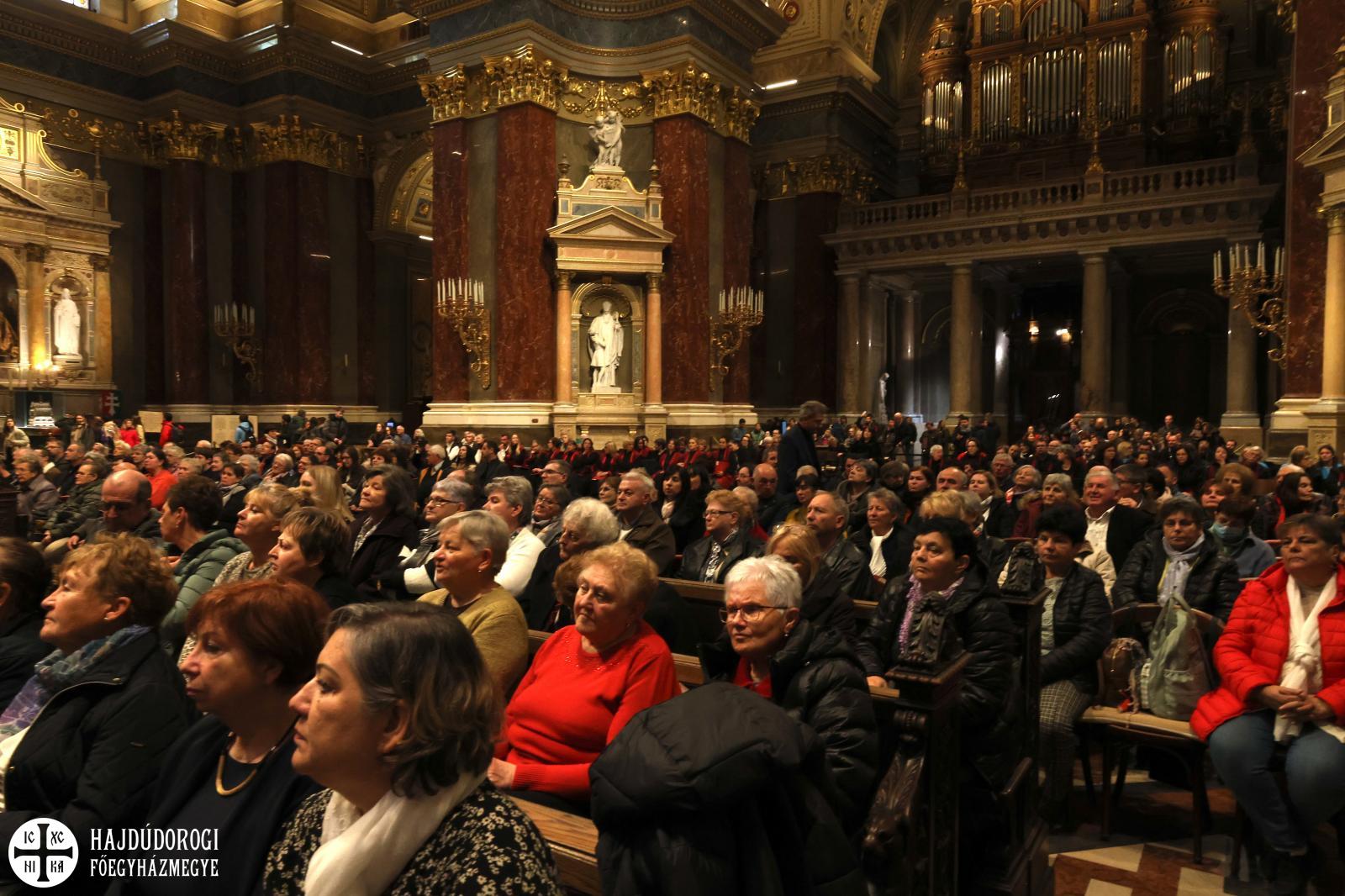 “Kívánom, hogy ez a mai együttlétünk fokozza a hűségünket azon Jézus Krisztus irányába, aki a Jelenések könyve szerint a hű tanú, és annyit kér közösségeitől, hogy légy hű mindhalálig. Az egyik Szent Páltól ránk maradt legutolsó levélben, amit Timóteushoz írt, megkapjuk ezt a nagyon fontos biztatást: ha vele együtt meghalunk, vele együtt élni is fogunk, ha vele együtt szenvedünk, vele együtt uralkodni is fogunk, ha megtagadjuk őt, Ő is megtagad minket, de ha hűtlenek leszünk, Ő hű marad, mert önmagát meg nem tagadhatja. Ezt a Megváltó Krisztust köszöntjük itt ma a Szent István Bazilikában”- adta át ezzel a szót a kóruséneklésnek a miskolci püspökatya.