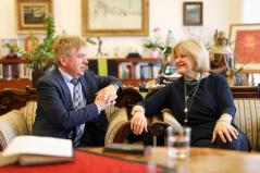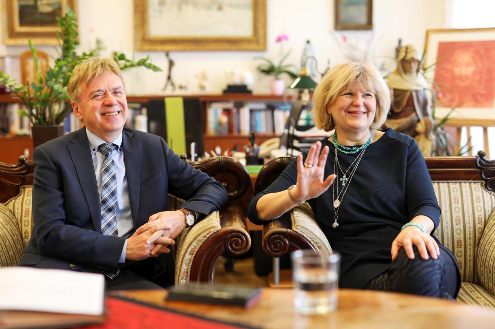 A Béres Gyógyszergyár gyönyörű budai épületében, Klára meghitt szobájában teázunk. Béres József, a cég vezetője, és Béres Klára kommunikációs igazgató idén ünneplik 45 éves házassági évfordulójukat, de a fél évszázad alig fogott a kapcsolaton: egymással évődő, vitatkozó, egymásra szenvedélyesen reflektáló, majd közösen derülő párral találkozunk.