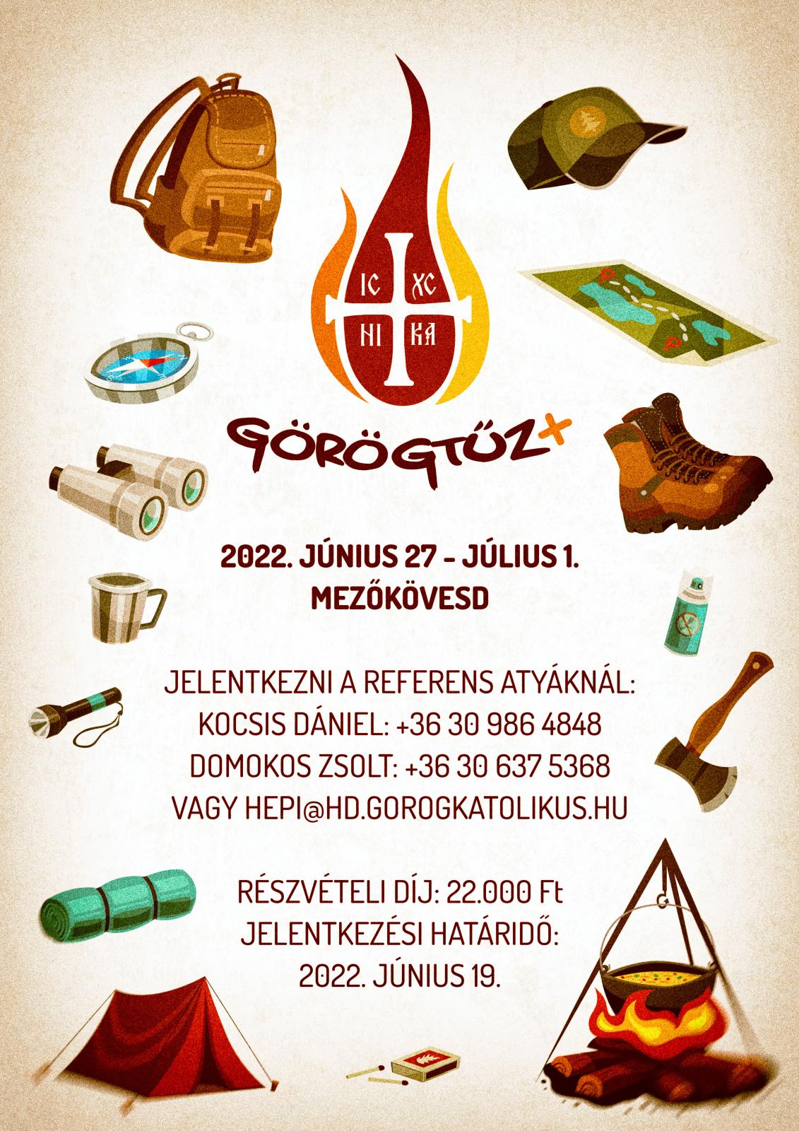 Idén nyáron a Hajdúdorogi Főegyházmegye és a Nyíregyházi Egyházmegye közösen középiskolai tábort szervez Görögtűz + néven 2022. június 27. és július 1. között a Zsóry Zsibongó Gyermeküdülő és Ifjúsági Táborba. (Mezőkövesd)