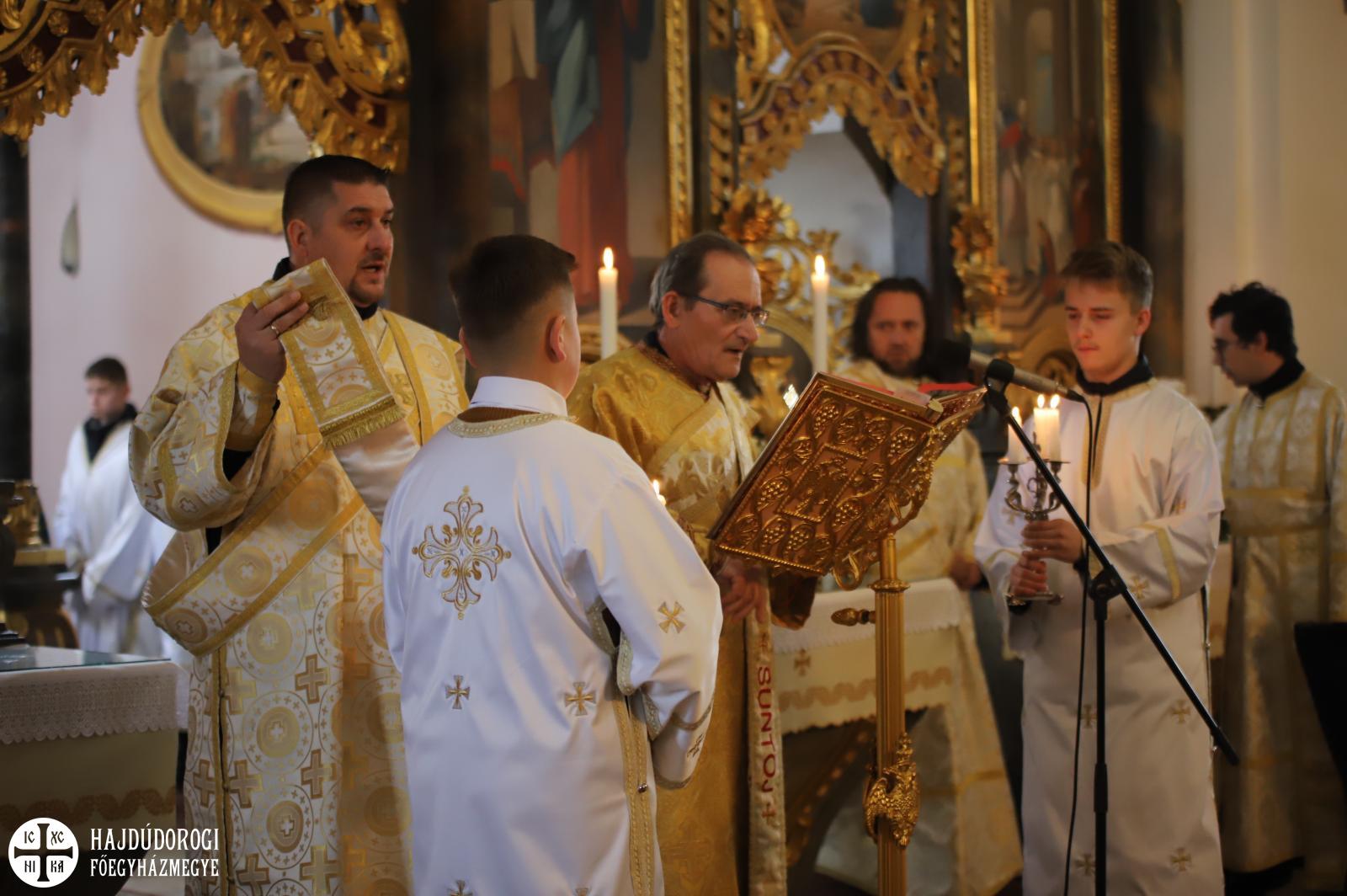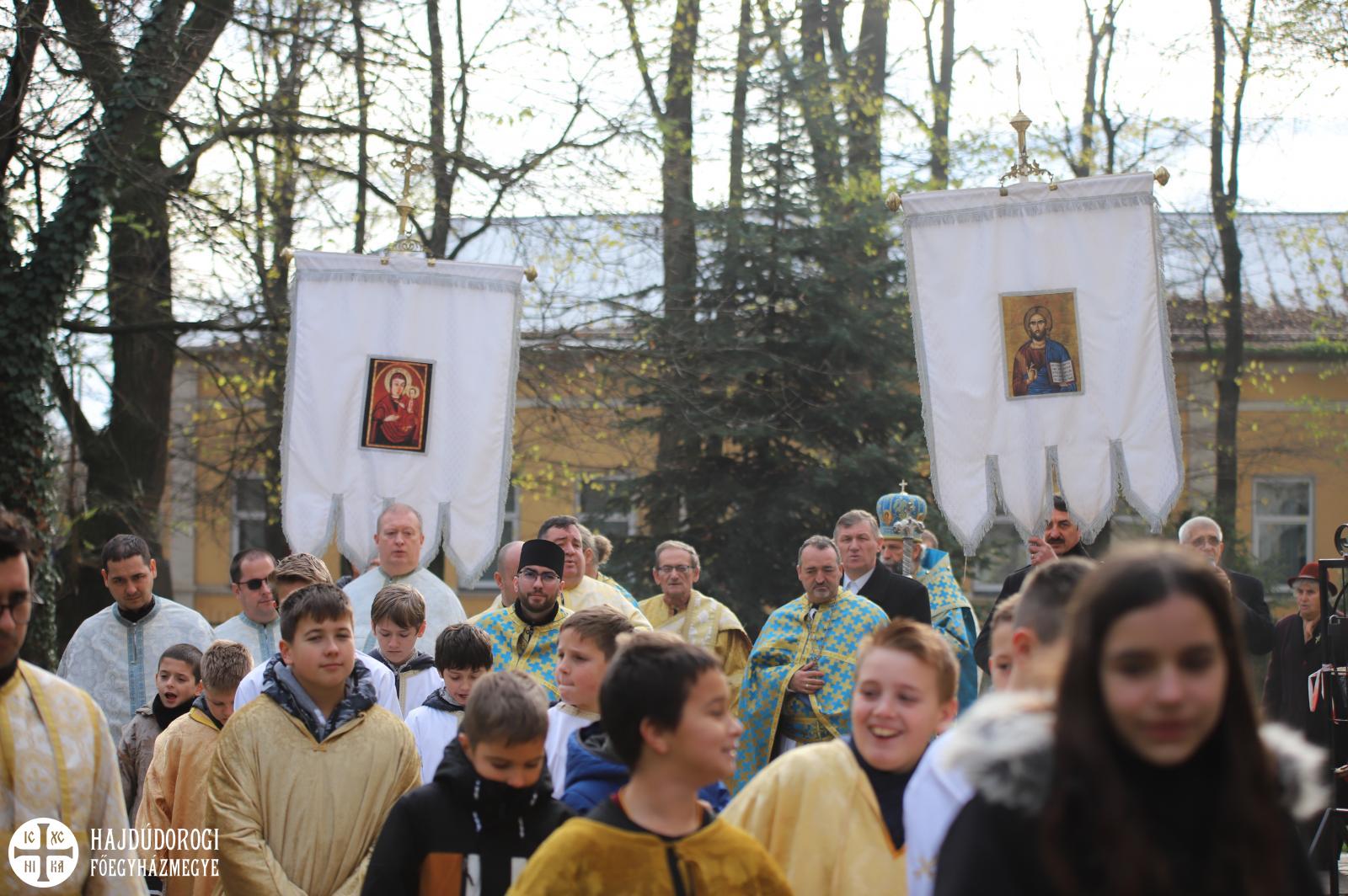 Nem lehet véletlen - kezdte beszédét Fülöp metropolita atya - hogy a hajdúdorogiak ősei valamilyen döntés eredményeképpen úgy határoztak, hogy a templom címünnepe az Istenszülő templomba vezetése legyen. Ők nagyon jól tudták az igazságot, talán a jövő nemzedékeinek üzentek vele: a legfontosabb feladat gyermekeink bevezetése a templomba, mert a kicsinyeknek a templomban a helyük, mindent meg kell tenni, hogy otthon érezzék ott magukat.