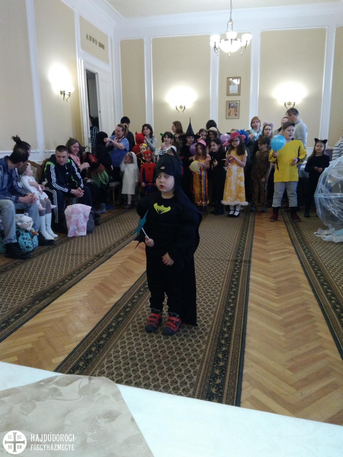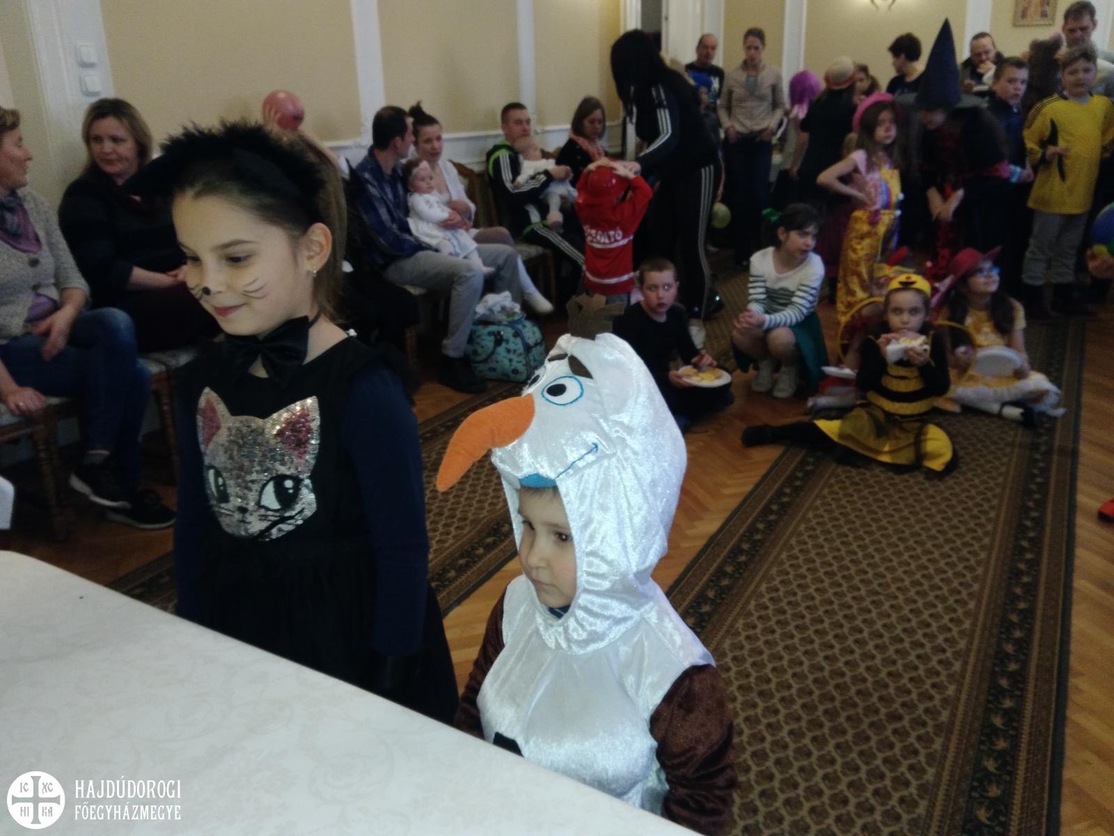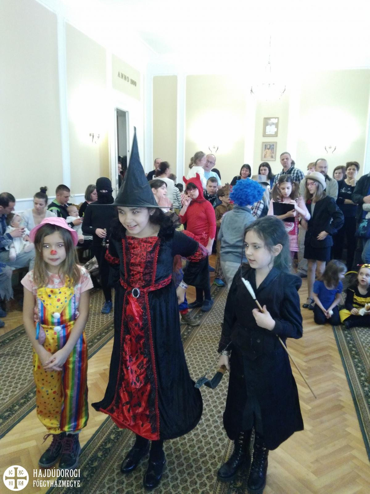 Izgatottan gyülekeztek és készültek a gyerekek, hiszen hagyománya van már közösségünkben ennek a napnak. A délután jelmezversennyel kezdődött, ahol jobbnál jobb és nagyon ötletes, sok esetben saját készítésű jelmezbe öltöztek be gyermekeink. Bár nagyon nehéz dolga volt a zsűrinek, hiszen nem volt könnyű a több mint 50 gyermeket értékelni, de sikerült a legjobbakat kiemelni.