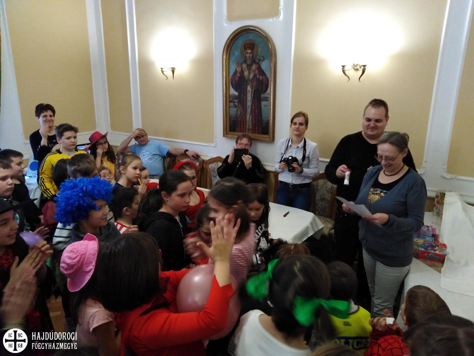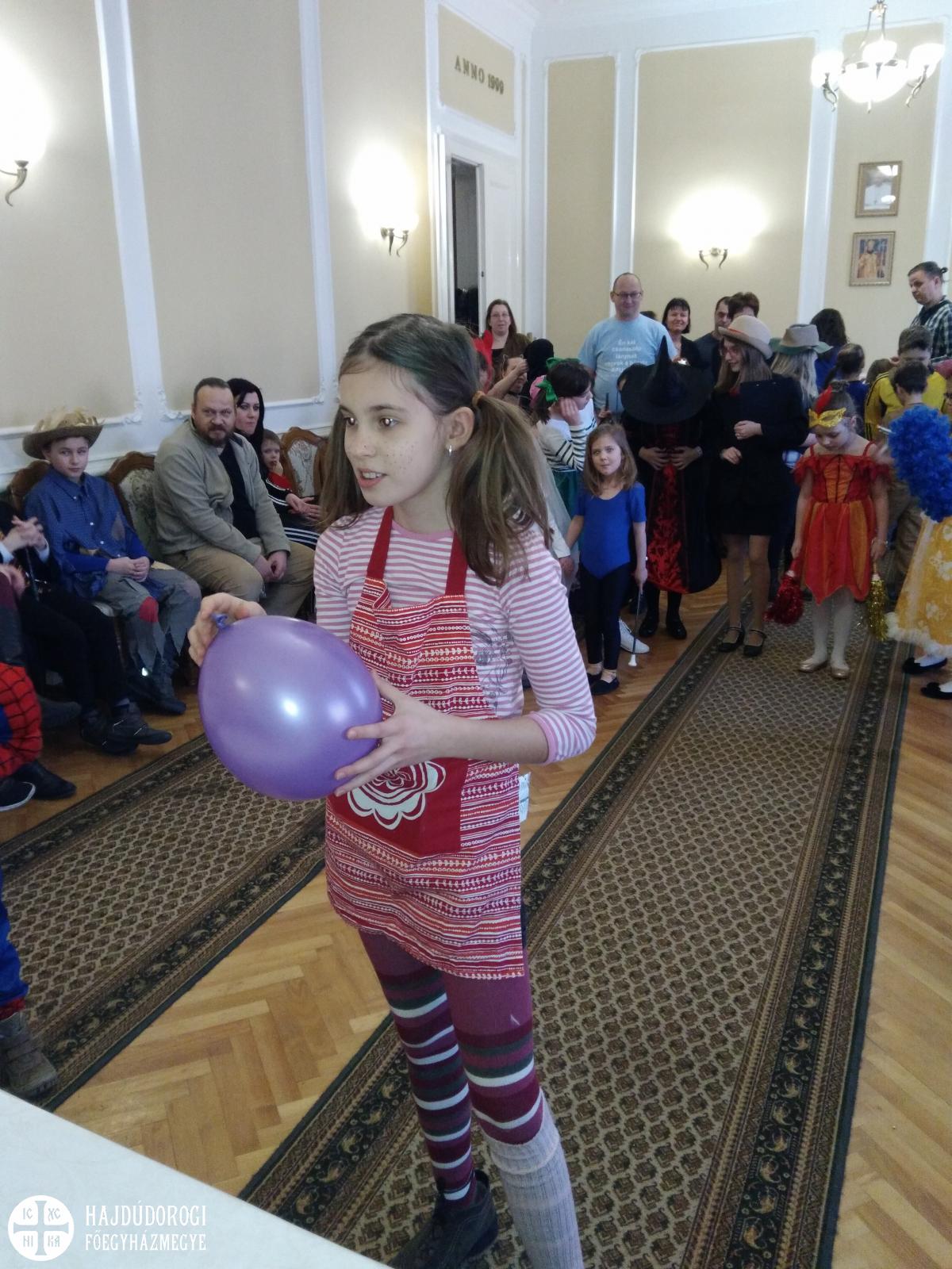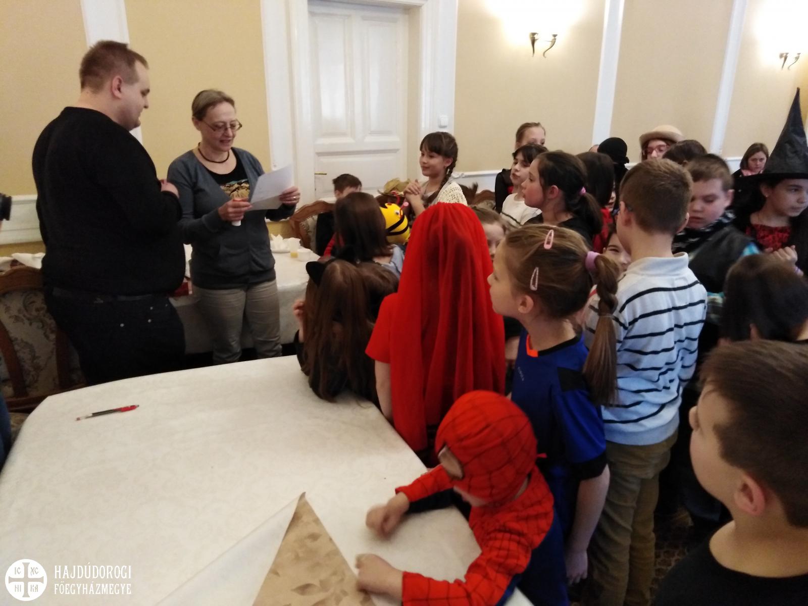 Izgatottan gyülekeztek és készültek a gyerekek, hiszen hagyománya van már közösségünkben ennek a napnak. A délután jelmezversennyel kezdődött, ahol jobbnál jobb és nagyon ötletes, sok esetben saját készítésű jelmezbe öltöztek be gyermekeink. Bár nagyon nehéz dolga volt a zsűrinek, hiszen nem volt könnyű a több mint 50 gyermeket értékelni, de sikerült a legjobbakat kiemelni.