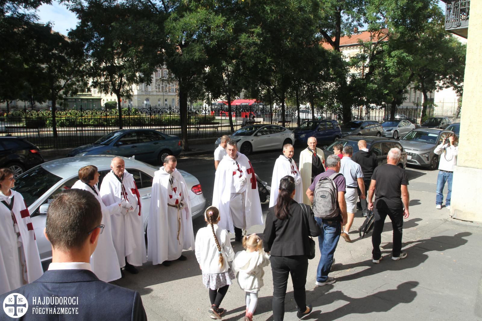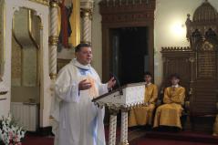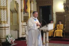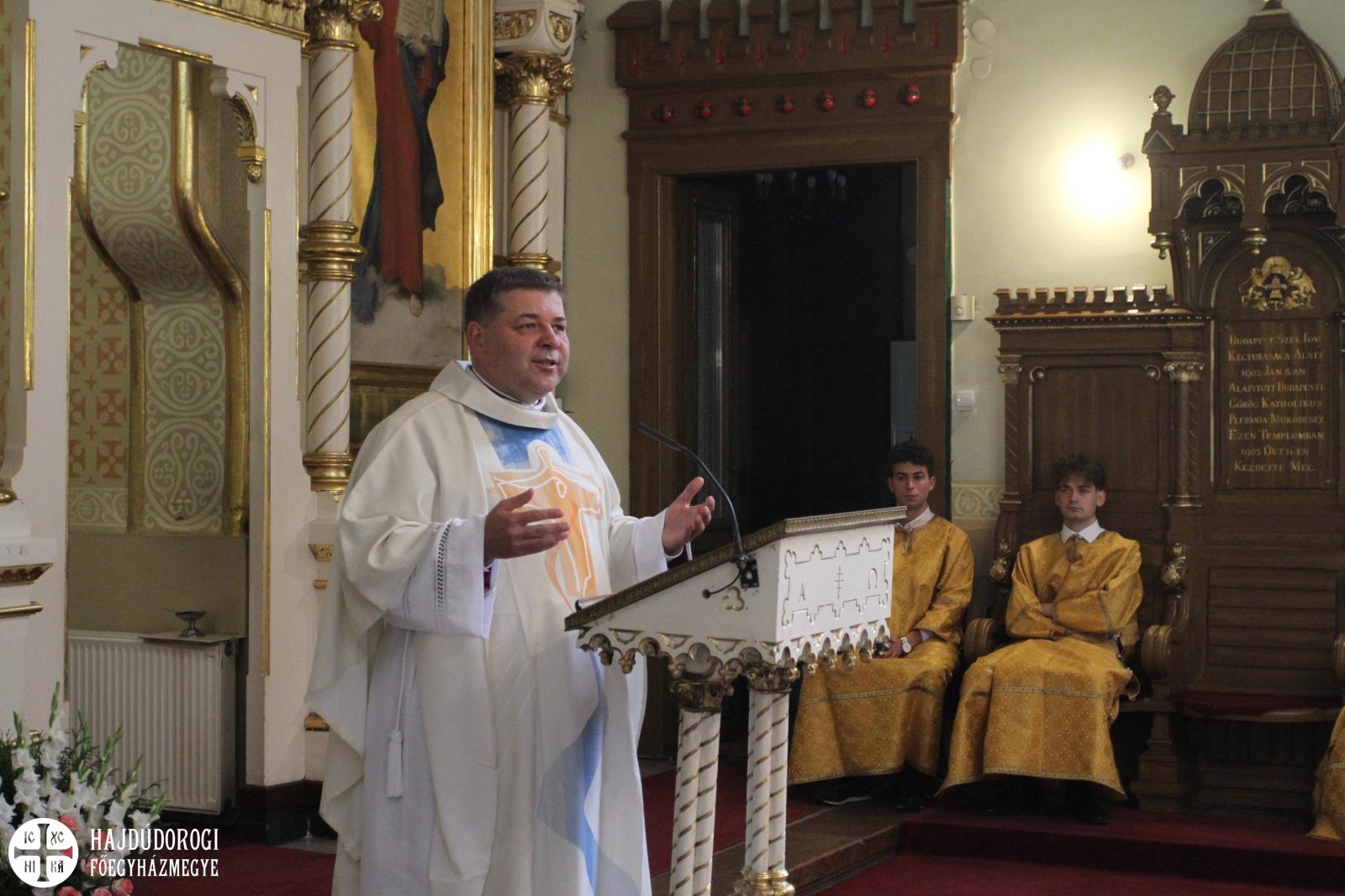 Prédikációjában Tóth Tamás atya kitért arra, hogy az Istenszülő, akit a római katolikusok a Magyarok nagyasszonyának is neveznek, a Rózsák terén egy gyönyörű oltárképről tekint le ránk. “Ez a kép is kifejezi, hogy mi, magyarok az Istenszülő oltalmába helyezzük mindazt, amink van, ami életünket képezi.” Tamás atya ebben a templomban járva nem tudott nem visszaemlékezni a Szentatya öt hónappal ezelőtti látogatására, hiszen számára sem mindennapi élmény volt többek között azt az alázatot és tiszteletet látni, ahogy Ferenc pápa végig várta az őt fogadó imádság, az akathisztosz végét, és csak azután foglalta el a helyét. Ahogy mondta: “a Szentatya sok beszédet mondott Magyarországon, és érdekes módon ezekben több magyar kifejezést is használt, pedig Ferenc pápa nem szeret olyan nyelveken megszólalni, amelyeken nem ért. A Rózsák terei közös görögkatolikus imádság után az Arénában összegyűlt tizenegyezer fiatalnak mégis magyar nyelven hangsúlyozta: Aki mer, az nyer.” A hallottak nyomán elgondolkodhatunk rajta mi, akik az Istenszülő oltalmában szeretnénk élni, hogy vajon ezzel a mondással mire szeretne bátorítani bennünket a katolikus egyházfő.