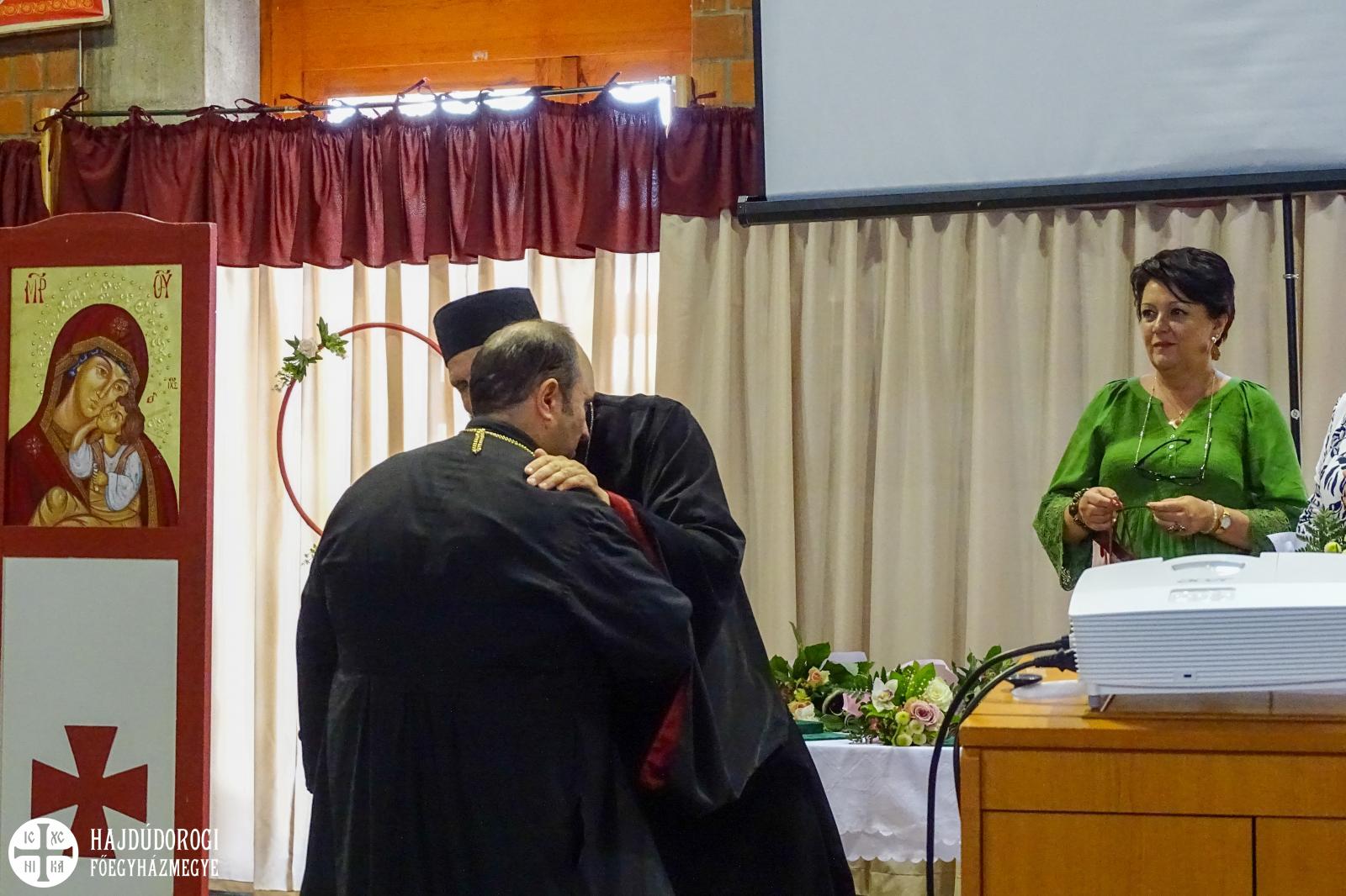 Az előadást követően Fülöp metropolita atya és Czövek Éva, a főegyházmegye oktatási hivatalának vezetője kitüntetéseket adott át a Hajdúdorogi Főegyházmegye fenntartásában működő köznevelési és szakképzési intézményekben dolgozóknak.