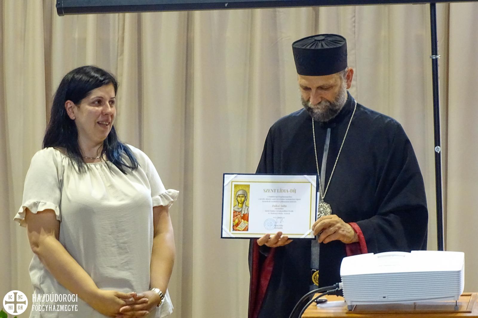 A Hajdúdorogi Főegyházmegyében a nevelés-oktatást segítő és technikai munkakörben végzett kiemelkedő munkájáért és példamutató hitéletéért Szent Lídia-díjban részesítette Fülöp érsek-metropolita Zsákai Anita iskolatitkárt, a szolnoki Szent Tamás Görögkatolikus Óvoda, Általános Iskola és AMI munkatársát.
