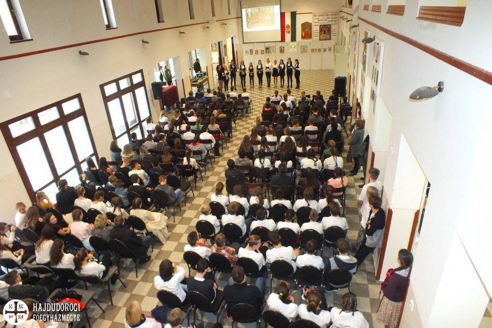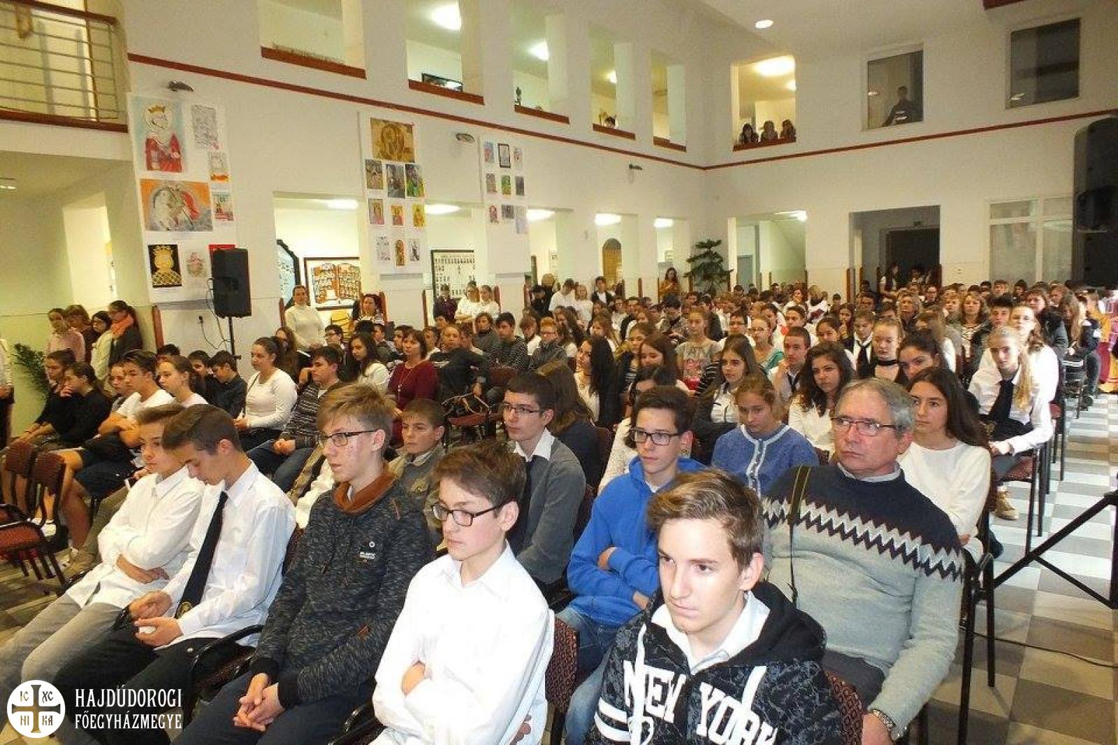 A találkozón iskolánk kamarakórusa és Szilágyi Gábor igazgató atya köszöntötte a vendégeket. A verseny megrendezésében és lebonyolításában középiskolánk tanárai és diákjai segítettek Kerékgyártóné Ihnáth Rita igazgatóhelyettes irányításával. A versenyeket követően, érdekes programok várták a vendégeket: iskolánk aulájában képzőművészeti foglalkozás, érdekes fizikai kísérletek és lego robot, az ebédlőben pingpong, csocsó, dekázás és airsoft, az udvaron teqball. Az eredményhirdetésre a hangulat tetőfokára hágott, mindenki várta munkájának eredményét.