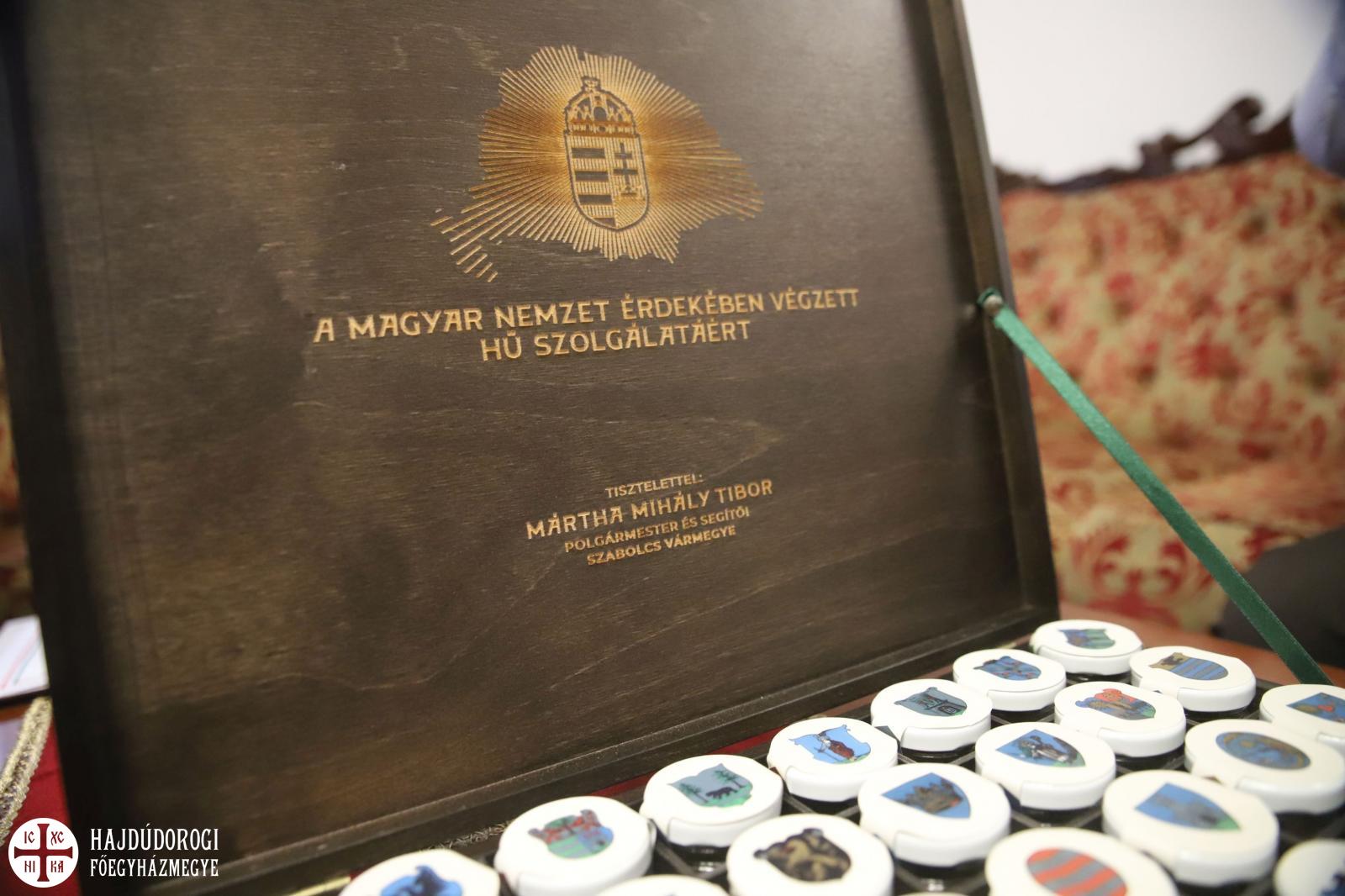 A polgármester elárulta, egy-egy ilyen dobozt már kapott Orbán Viktor miniszterelnök, Semjén Zsolt miniszterelnök-helyettes és dr. Seszták Miklós kormánybiztos is.