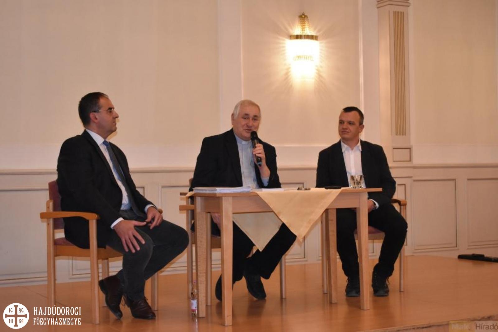 Az előadó idézett Ferenc pápa Amoris Laetitia című apostoli buzdításából is, amelyből kiemelte, hogy számos veszély is fenyegeti ma a szentségi kapcsolatokat, többek közt a sodródás a világgal, a technológiai szemlélet és az én-központúság is. – Sajnos sok minden gátolja a személyességet, ami pedig a legfontosabb tényező lenne. Időt kell szánnunk egymásra, és arra, hogy döntésképes gyermekeket neveljünk. A keresztény házasságokban a két ember egymás és Isten felé indul el egyszerre és ez a mindent megosztás helye is – összegezte személyes hangvételű és történetekkel alátámasztott mondanivalóját Bíró László püspök, aki egy elgondolkodtató és megfontolandó idézetet is megosztott a hallgatósággal: „Azzal köss házasságot, akivel az oltár elé állsz!”
