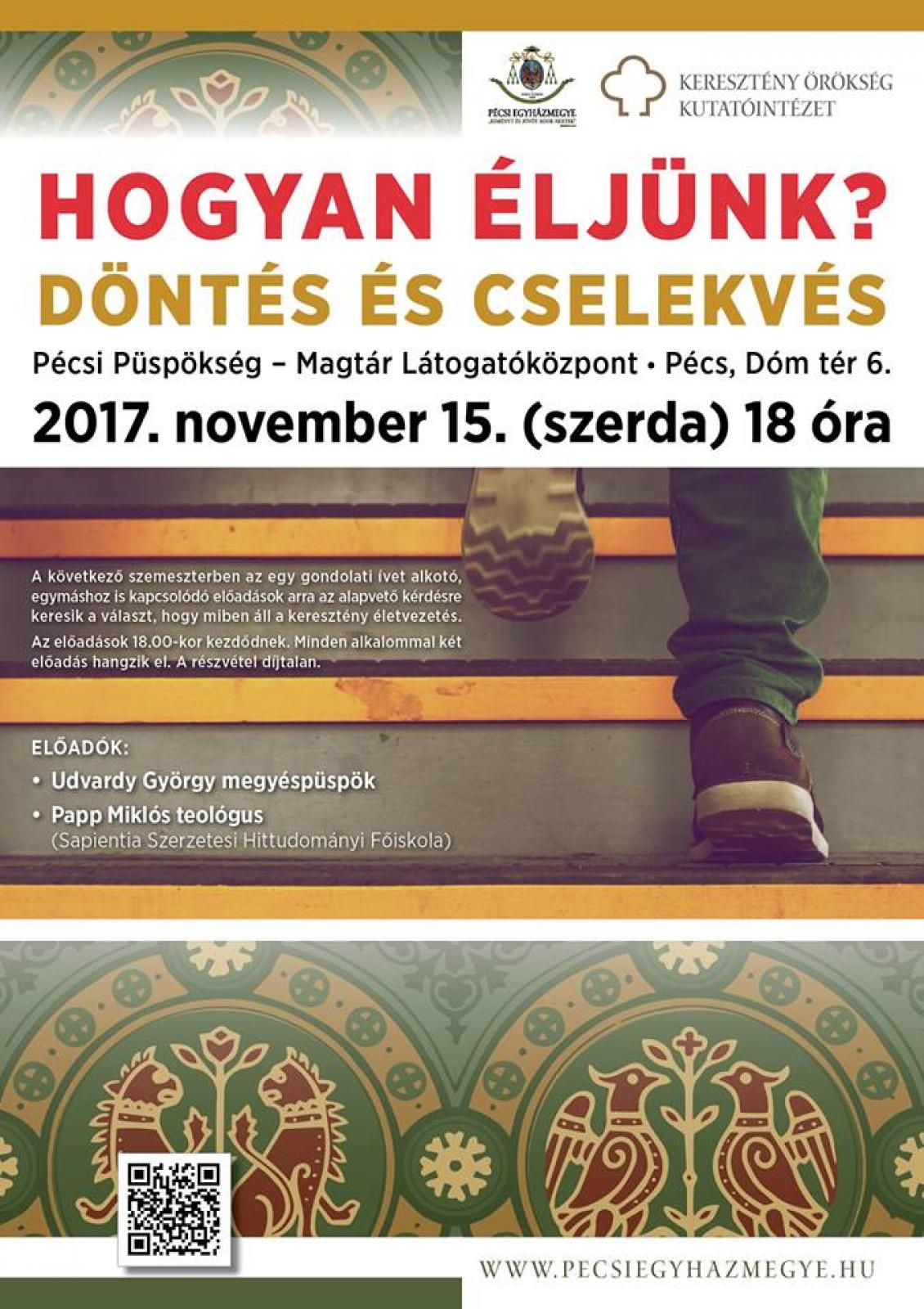 A Pécsi Egyházmegye szervezésében tartanak szabadegyetemet Pécsett. A cím: Hogyan éljünk? Döntés és cselekvés.