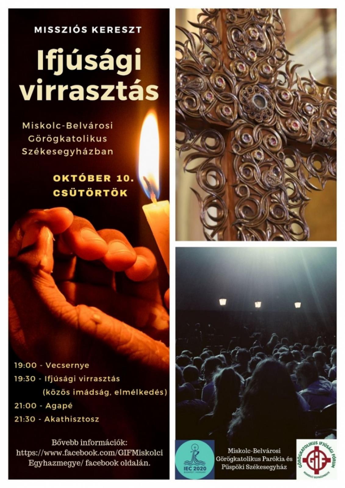 19.30 -tól az ifjúság virrasztása közös imádsággal és elmélkedésekkel