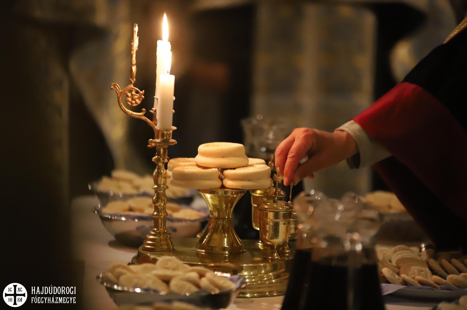 Este virrasztás kezdődött: az Akathisztosz mélytartalmú szövegeit többszólamú énekléssel imádkozták végig az Istenanya tiszteletére. Majd litiás nagyvecsernyét végeztek, ami éjszakai körmenettel és agapéval zárult. Sokan kitartottak a hajnalig tartó utrenye imádkozásában is.