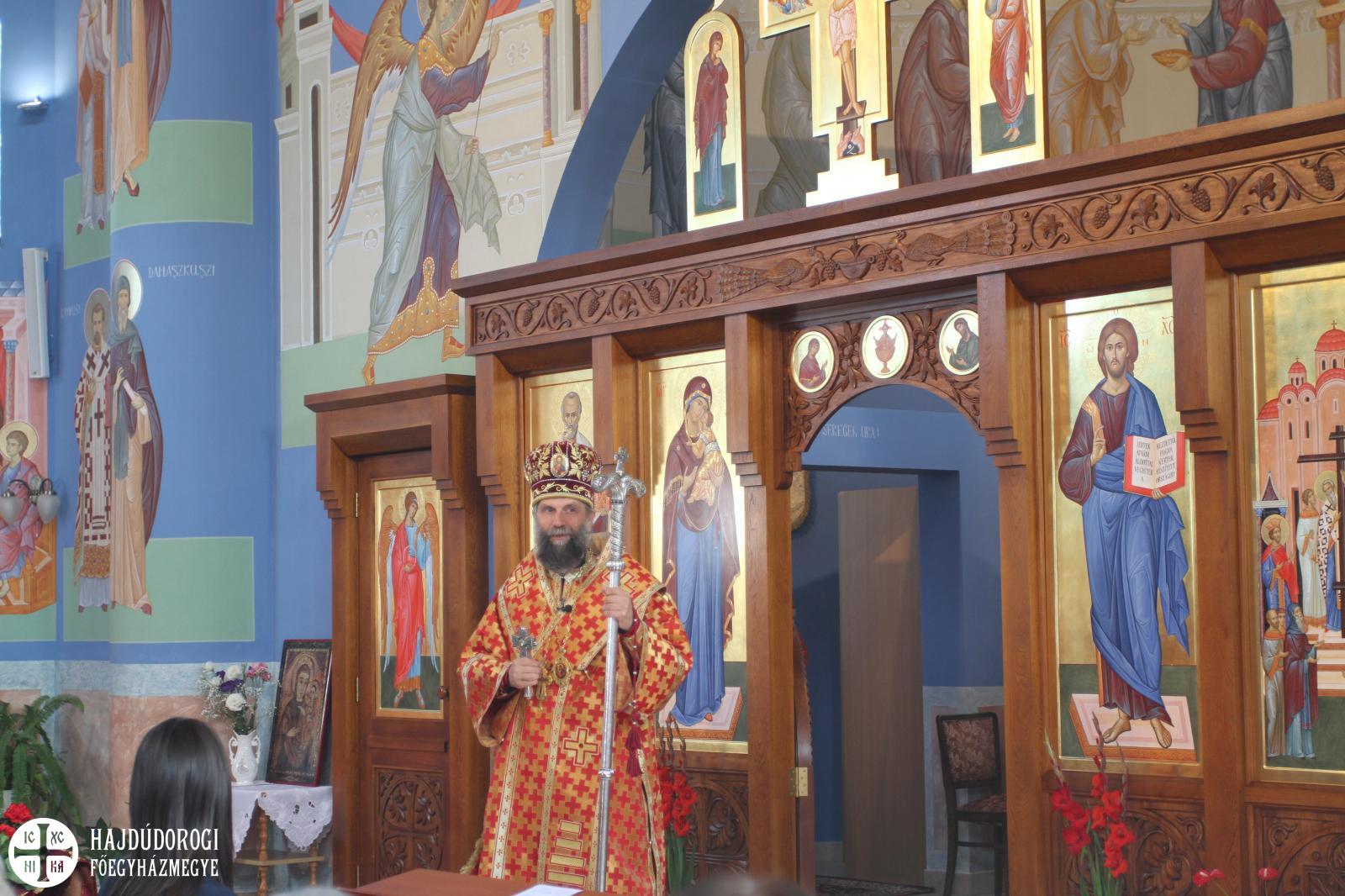 Az újonnan épített templomok közül ezt mondhatjuk a legszebbnek – kezdte beszédét az érsek-metropolita atya. Köszönet illeti mindazokat, akiknek részük volt benne, hogy ilyen gyönyörű görögkatolikus templom legyen Gödöllőn. Hála az adományozóknak, az építőknek, a tervezőknek, a munkásoknak és az egyházközség összes tagjának, akik munkálkodtak benne és imáikkal kísérték gyarapodását, épülését, szépülését. Köszönet a Jóistennek, aki mindezt elindította a lelkünkben és megengedte, hogy az itteniek mindezt végbe is vigyék.