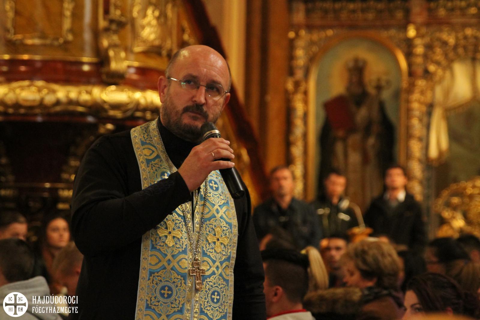 A tanúságtétel után következett a Paraklisz, a diákok és kísérőik együtt vonultak át és töltötték meg a Kegytemplomot, ahol már Orosz István kegyhelyigazgató várta őket. Most is vidám és lelkesítő gondolataival.