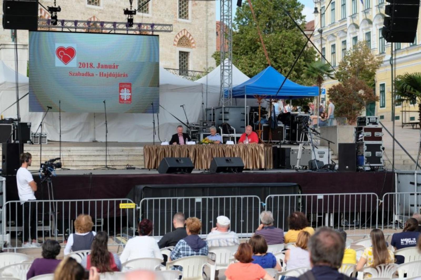 A délután nyitányaként a nagyszínpadon kérték beszélgetésre a Katolikus Karitász képviseletében Écsy Gábor karitászigazgatót és Csókay András orvosprofesszort; a Katolikus Szeretetszolgálat képviseletében pedig Süveges Gergő kérdezte a 2018-ban indult „Természetes gyermekáldás” projektről Taller Borbála orvost és a Záhonyi házaspárt.