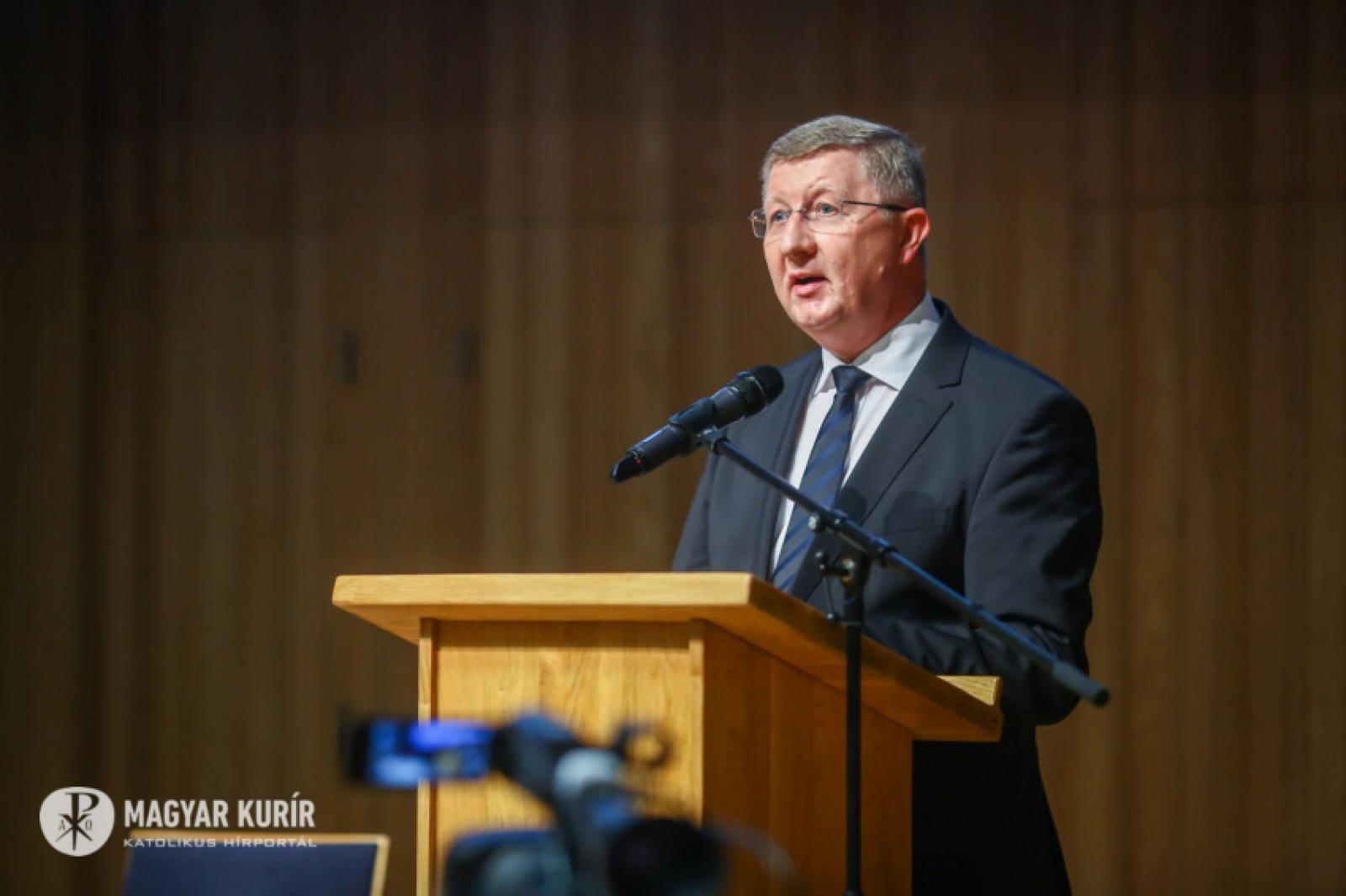Michael August Blume SVD apostoli nuncius köszöntőbeszédét követően Kurt Koch bíboros, a Keresztény Egység Előmozdítása Pápai Tanácsának elnöke Hogyan viszonyul a világhoz a keresztény hit? – Megfontolások az ökumené szemszögéből címmel tartott előadást.