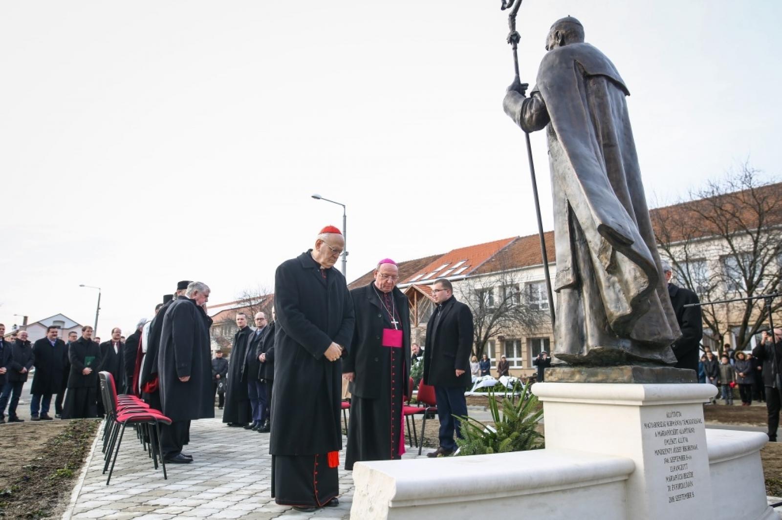 Máriapócson ünneplő sokaság gyűlt össze az ősszel állított Mindszenty-szobor körül. A Szeplőtelen Fogantatás-templom előtt a falu közössége koszorúzni készült. Az emlékezés koszorúját helyezte el Erdő Péter bíboros, prímás, Kásler Miklós, az emberi erőforrások minisztere, Kocsis Fülöp érsek-metropolita, Palánki Ferenc debrecen-nyíregyházi és Szocska Ábel nyíregyházi megyéspüspök, valamint a közélet számos képviselője. Számos helybeli között a megemlékezésen részt vettek a Szent II. János Pál idősotthon lakói, a bazilissza nővérek, a Dudás Miklós görögkatolikus iskola diákjai, valamint sok környékbeli településről érkezett vendég.