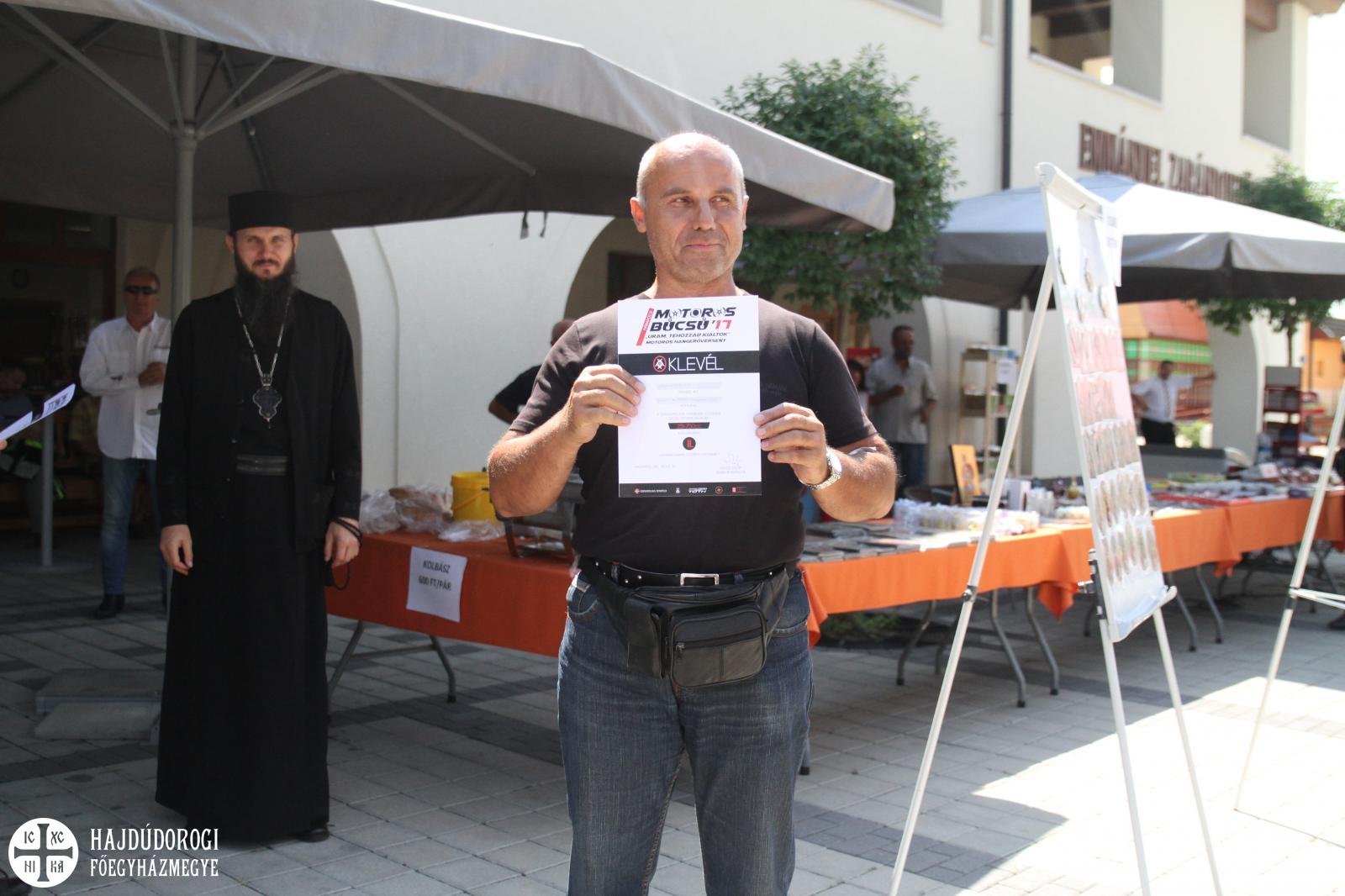 “Uram, tehozzád kiáltok”: ezt a címet kapta a sokak által várt motor hangerő verseny: a vagányak húzhattak egy kövér gázt, szakember mérte a decibeleket. A díjakat Szocska Ábel apostoli kormányzó adta át. És hogy kinek a motorja dicsérte a leghangosabban az Urat? Szabó Sándor vehette át az első helyezettnek járó emléklapot.