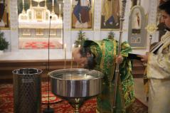 A szenteléshez kapcsolódó szentírási részek felolvasása után szentelte meg érsek-metropolita atya a templomhajóba kihelyezett vizet: háromágú gyertyát mártott bele, kezével keresztet rajzolt a vízbe, majd rálehelve kérte a Szentlélek eljövetelét. Végezetül a keresztet merítette meg a vízben háromszor. A szertartás végén a megszentelt vízzel hintette meg a híveket.