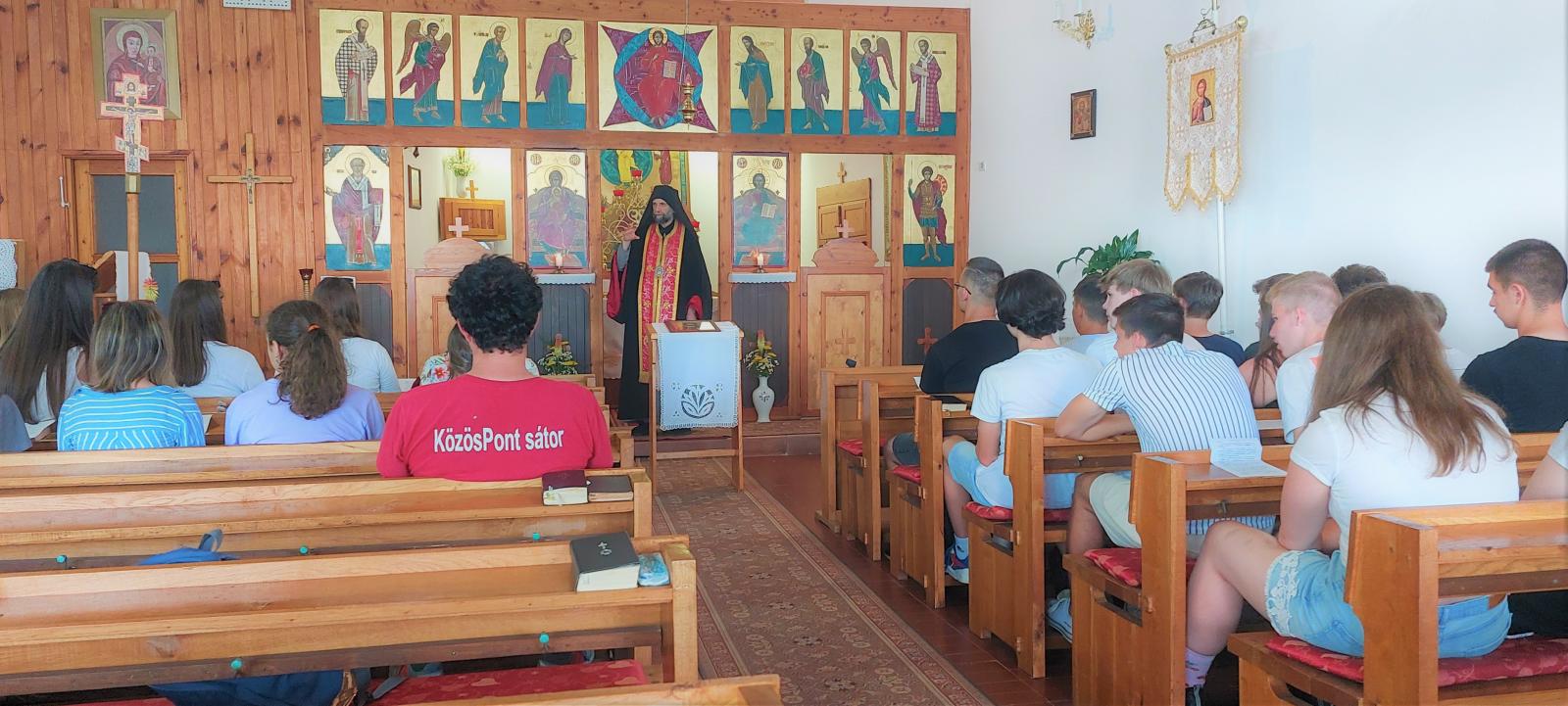 A remek szállás elfoglalása és a finom ebéd elfogyasztása után elindult a csapat a Megyer-hegyi tengerszemhez, ahol csatlakozott a fiatalokhoz Fülöp metropolita atya is. A főpásztor vezetésével a pálházi görögkatolikus templomban vecsernyén kérték a táborozók a Jóisten áldását erre a hétre.