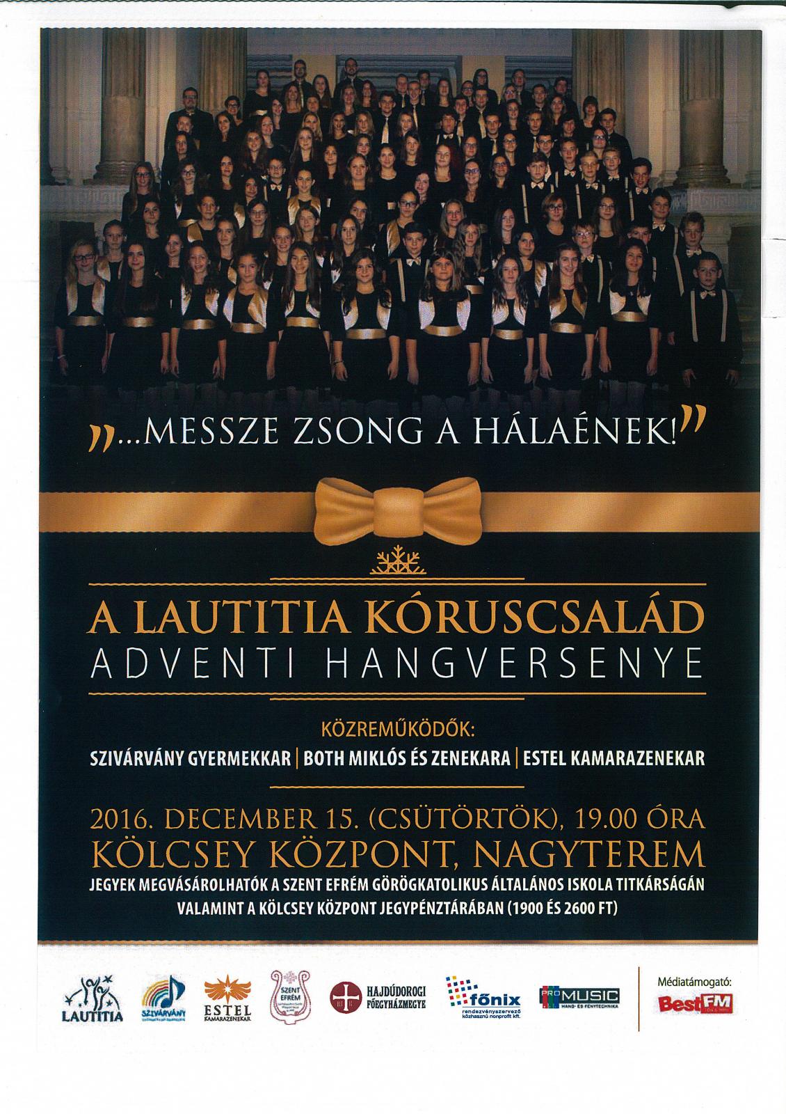 A Lautitia Kóruscsalád Adventi Hangversenye 2016. december 15-én lesz Debrecenben, a Kölcsey Központban. Szeretettel várják az érdeklődőket!