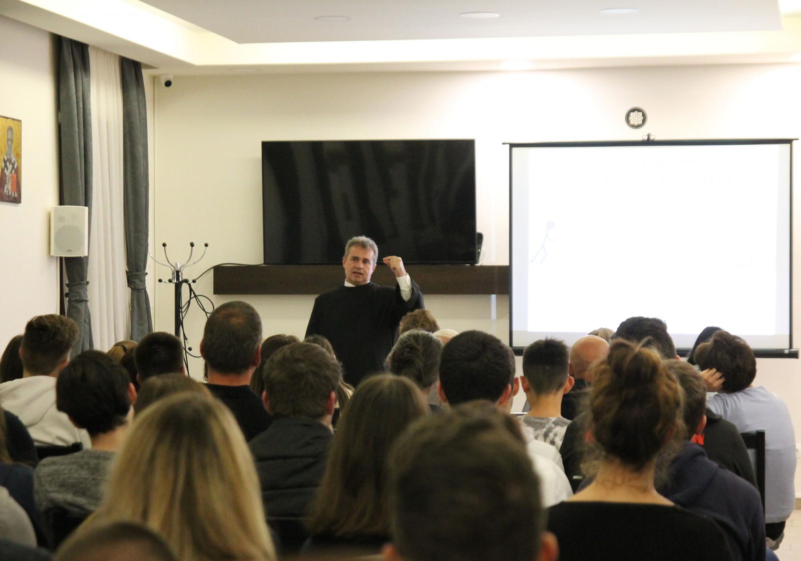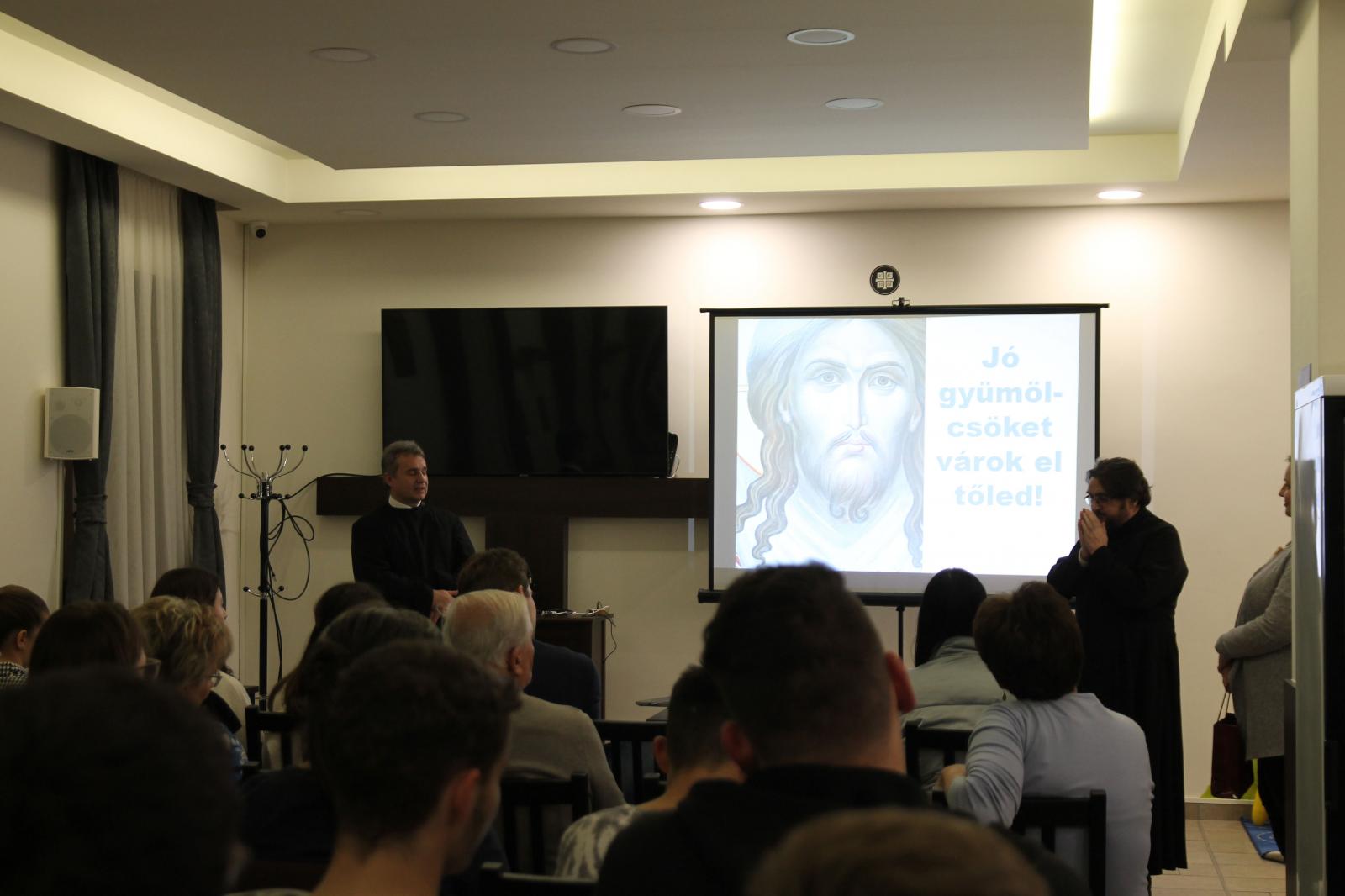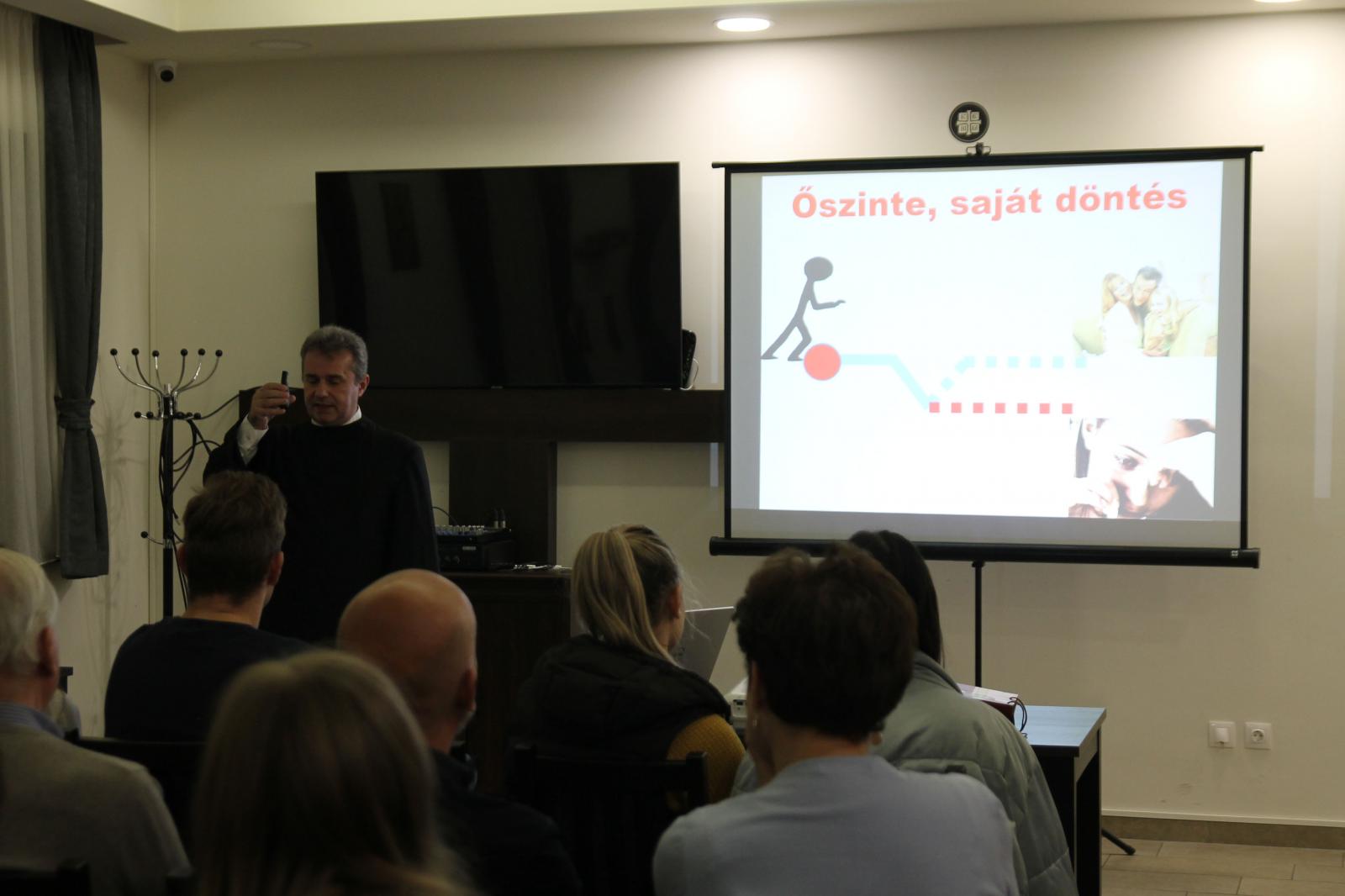Miklós atya a tőle megszokott színvonalas és lendületes előadása fókuszában az egyetemista életkor kritikus élethelyzeteit, döntési lehetőségeit állította. Ahogyan tőle ezt megszokhattuk, nem hagyott minket megoldások nélkül. Több évtizedes papi és teológia tanári tapasztalatait gazdagon elénk tárva adott biztatást a hallgatóságnak. A döntéshelyzetekről való beszélgetést, valamint keresztény megoldási stratégiáinak ismertetését, ő maga küldetésnek tartja. Mi a jelenlevők kedd este nagyon úgy éreztük, hogy a küldetés teljesült!