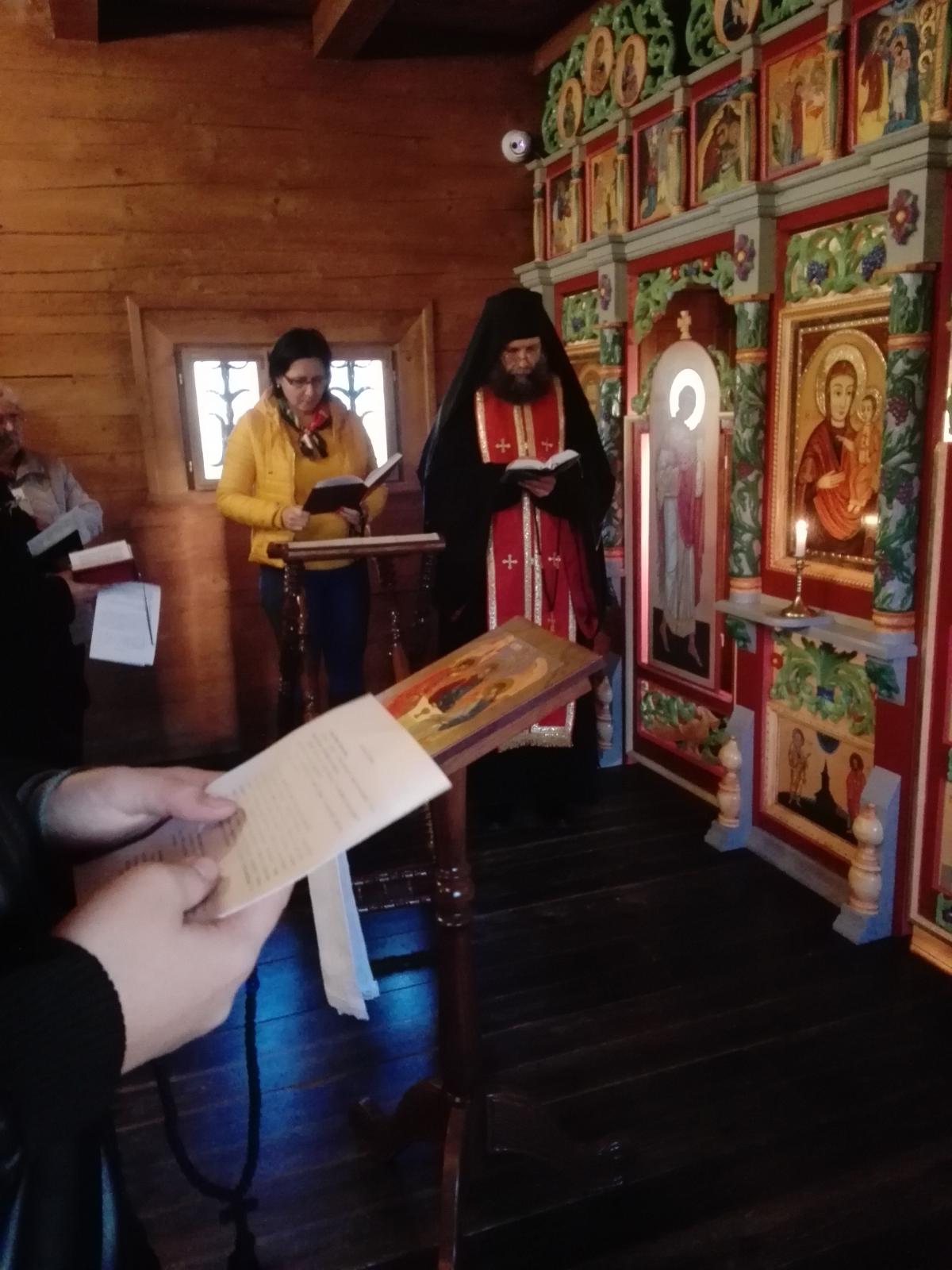 A nap további részében átvettük a temetési szertartás énekeit, majd folytattuk a felkészülést, hiszen az előesti vecsernyén és a vasárnap reggeli utrenyén mi szolgáltunk a kegytemplomban.