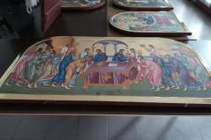 Magának a jelenetnek és a királyi ajtó elhelyezkedésének is szimbolikus jelentése van a görögkatolikus Szent Liturgiában. Mögötte, az oltárnál történik meg az eucharisztia: Krisztus testévé és vérévé átváltoztatott szentség lesz a kenyérből és borból. Az ajtó tehát a láthatatlan és látható, az égi és a földi, az isteni és az emberi kettősének mezsgyéjén helyezkedik el, mely utat nyithat egyik világból a másikba. Ahogyan megnyílt Szűz Mária méhe, befogadván a befogadhatatlant. Ezen az ajtón csak a szertartást végző áldozópapok haladhatnak át szertartás közben. Húsvét hétfővel kezdődő fényes hét során azonban folyton nyitva áll, jelezve a híveknek, hogy ugyanígy nyitva áll a mennyek kapuja is. A királyi ajtó és az ikonosztáz többi képe is lakkozást kapott nemrég, melynek következében az arany háttér valóban az isteni ragyogást közvetíti a szemlélőnek.