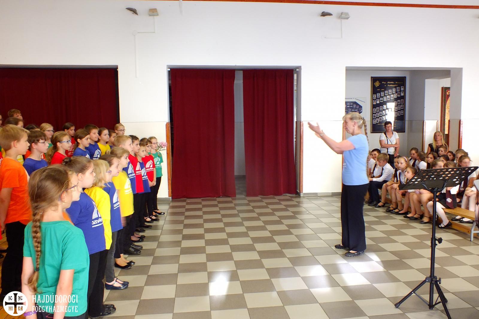 A hangverseny végén a fellépő kórusok két népdalt énekeltek közösen, ekkor több mint 150 görögkatolikus fiatal állt a színpadon, ezáltal is szimbolizálva az összetartozást, majd minden fellépő elfogyaszthatta iskolánk ebédlőjében a jutalom somlói galuskát.