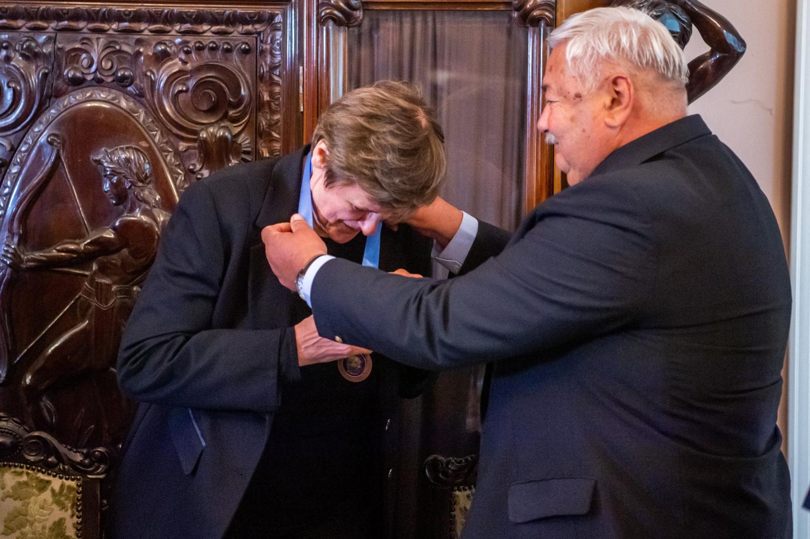 Az eseményt Szunai Miklós, az Emberi Méltóság Tanácsának főtitkára szervezte, akiről érdemes megjegyezni, hogy ő ajándékozta a Görögkatolikus Egyháznak a máriapócsi fatemplomot. Szunai Miklós meghívására az átadó ünnepségen mindössze tíz meghívott vendég volt jelen, közöttük Fülöp metropolita atya is, aki a Görögkatolikus Egyház ajándékaként Alexandriai Szent Katalint ábrázoló rézkarccal lepte meg a tudóst. A mű Monostory Viktória alkotása. Az ünnepség fényét Dévai Nagy Kamilla énekes előadása emelte. Záróénekként egy szép Miatyánk feldolgozás csendült fel, még inkább megadva az esemény lelki tartalmát.