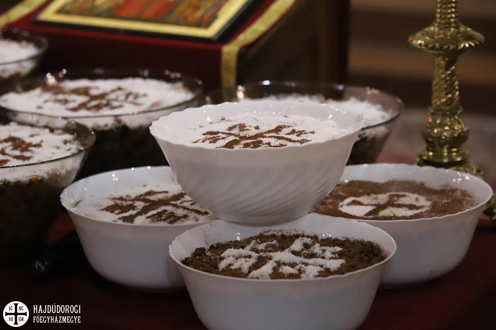 Nagy tálakban sorakoztak a mézes-gyümölcsös finomságok az asztalon; Nagyböjt második Előszenteltek Liturgiájának elmaradhatlan része ennek megáldása. A koliba elnevezés arra az édes süteményre is utal, amit a halotti torokon osztottak szét az egybegyűlteknek.