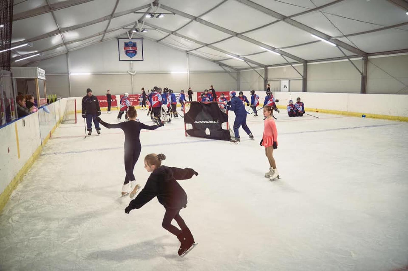 Biró István parókus atya pedig rendhagyó módon: korcsolyán állva áldott meg az új funkciókkal ellátott pályát.