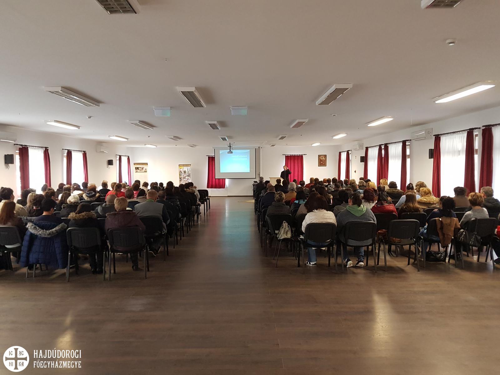 Március 6-án, hétfőn a Szent Lukács Görögkatolikus Szeretetszolgálat különböző intézményeiben dolgozó közfoglalkoztatottak egy lelkinapon vettek részt Máriapócson. Három gyermekvédelmi intézményünkből: Debrecenből, Hajdúnánásról, Nyíregyházáról és szociális intézményeinkből: Fehérgyarmatról, Hodászról, Máriapócsról, Nyírvasváriból, Nyírkarászról, Szakolyból érkeztünk, közel 120-an, hogy kiszakadva a mindennapi munkánkból egy szép napot tölthessünk Nemzeti Kegyhelyünkön. Az elmélkedéseket Gajdos László csegöldi parókus atya tartotta, melyekben a helyes isten-kép megtalálásában segített minket. A Szent Liturgiában pedig Ősz Tibor, a Szeretetszolgálat lelki igazgatója tanított minket arra, hogy hogyan lehetséges az eredeti isten-képmásságunkhoz egyre jobban visszatalálni.