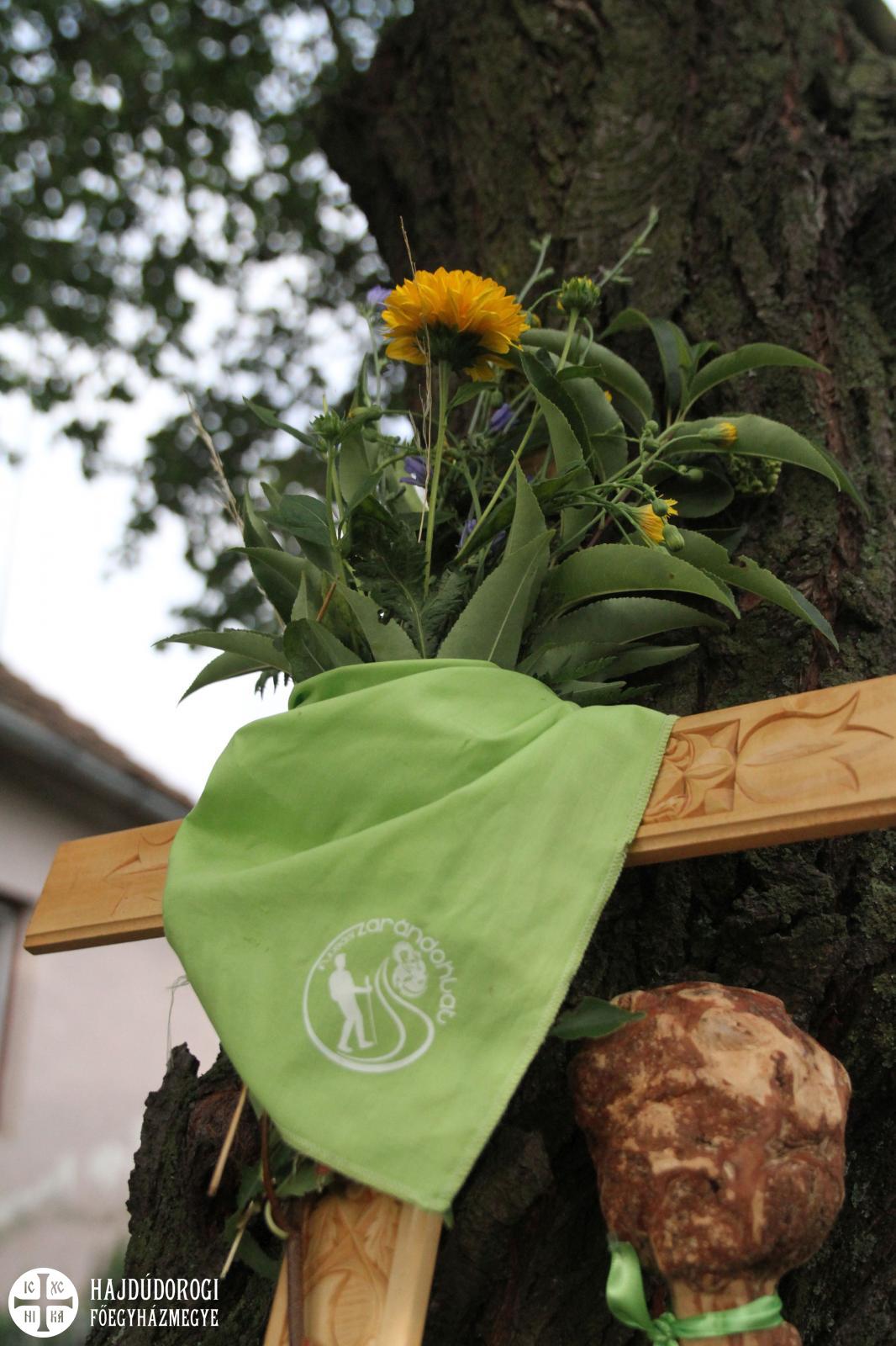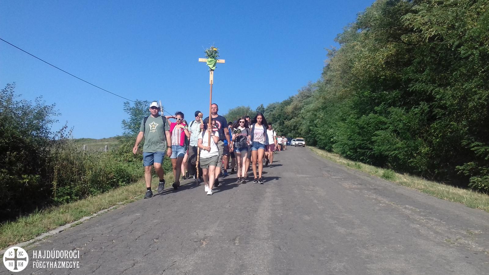 Az első állomás Hegyközcsatár volt, eddig (kivételesen) busszal mentek a résztvevők, hiszen a keddi táv jócskán meghaladta volna az erőforrásokat. Az ottani egyházközség lelkes tagjai finomságokkal várták a mieinket. A rövid feltöltődés után már valóban gyalogosan folytatták útjukat a zarándokok. A bihari térség csodás tájain szelték a kilométereket. Hegynek fel, hegynek le. Többen is megjegyezték: régen láttak ilyen szép tájat.