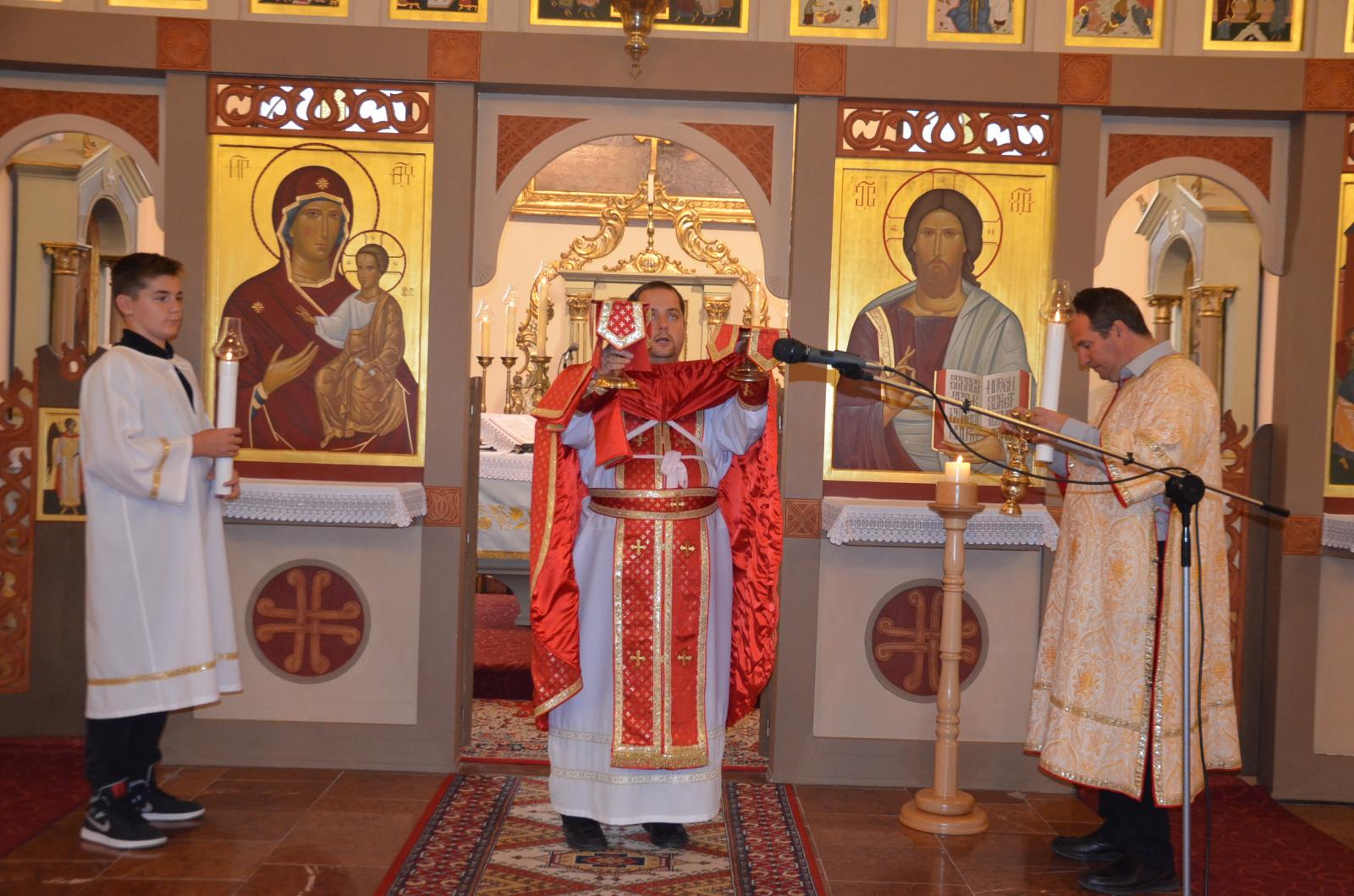 Ám ezen a napon templomunk nemcsak az Ars Sacra Fesztivál apropójaként öltözött díszbe, borult virágba és vált gyertyafénytől világossá. Ünnepélyességének fényét emelte az is, hogy szeptember 14. a Görögkatolikus Egyház életében a Szent Kereszt felmagasztalásának ünnepe is, ahol Krisztus keresztjének a megtalálására emlékezünk.